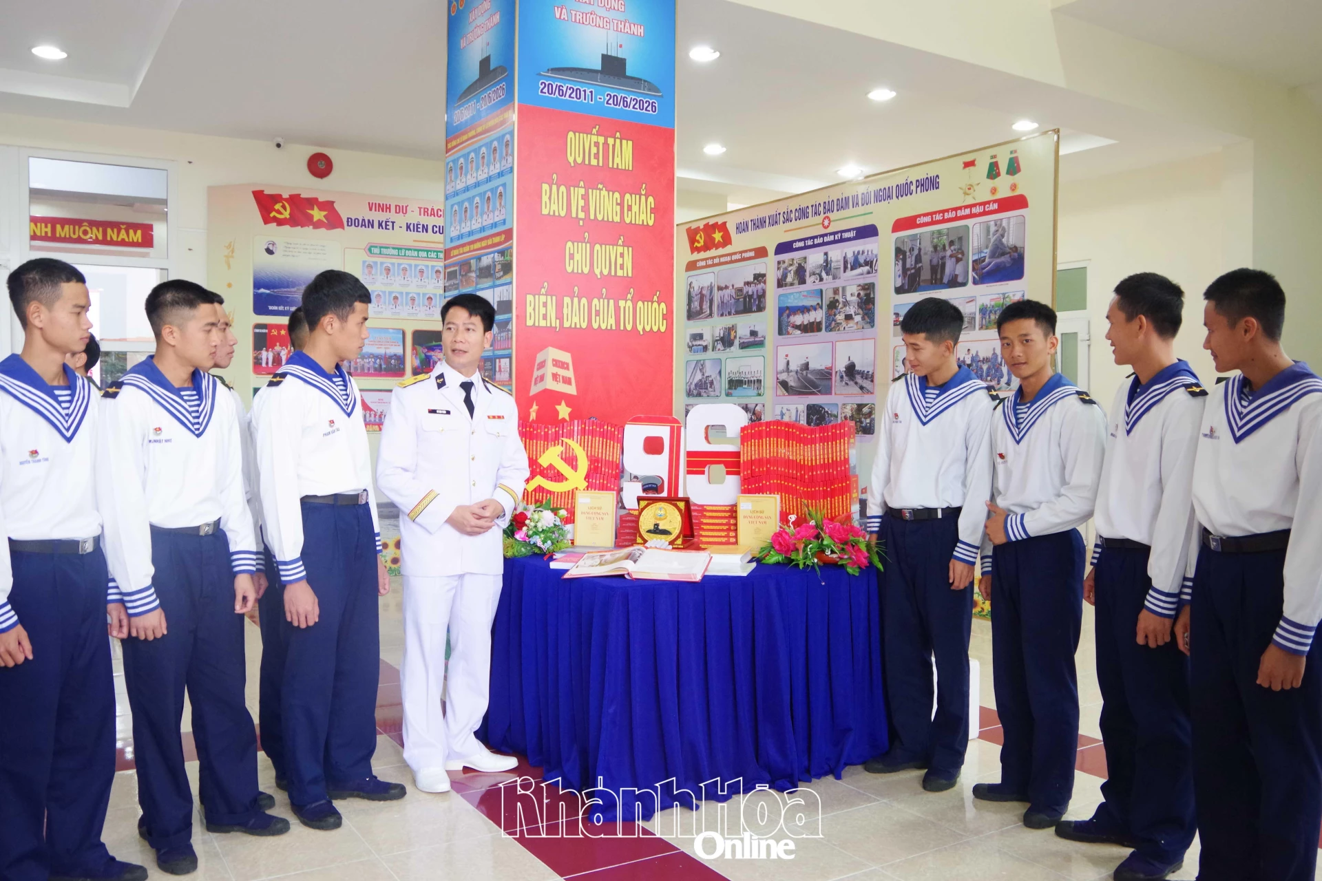 Các hạ sĩ quan, binh sĩ tham quan không gian trưng bày và giới thiệu sách.
