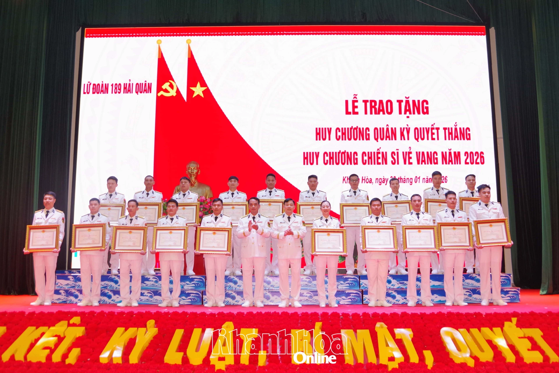 Ngày 22-1, Lữ đoàn 189 Hải quân tổ chức Lễ trao tặng Huy chương Quân kỳ Quyết thắng, Huy chương Chiến sĩ vẻ vang các hạng cho sĩ quan, quân nhân chuyên nghiệp có nhiều năm cống hiến trong quân đội, hoàn thành tốt và xuất sắc mọi nhiệm vụ được giao.
