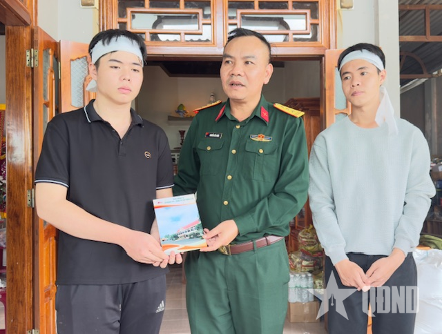 Đoàn công tác động viên gia đình có người thân thiệt mạng tại xã Hòa Thịnh.