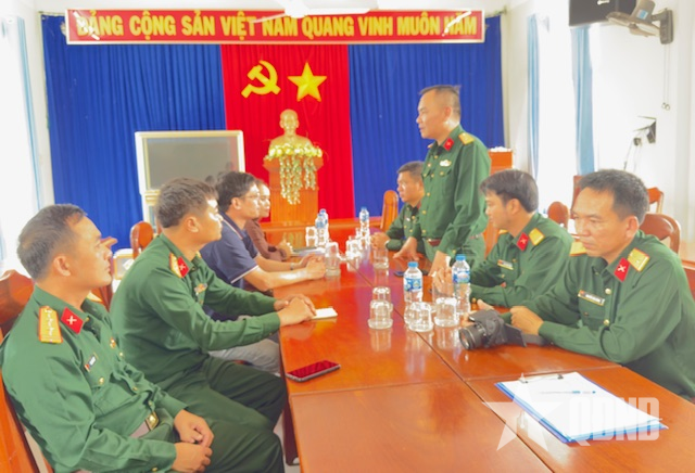 Đoàn công tác Lữ đoàn 470 trao đổi với lãnh đạo xã Hòa Thịnh.