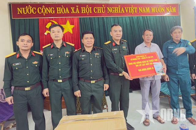Đoàn công tác Lữ đoàn 470 trao hỗ trợ xã Hòa Mỹ.
