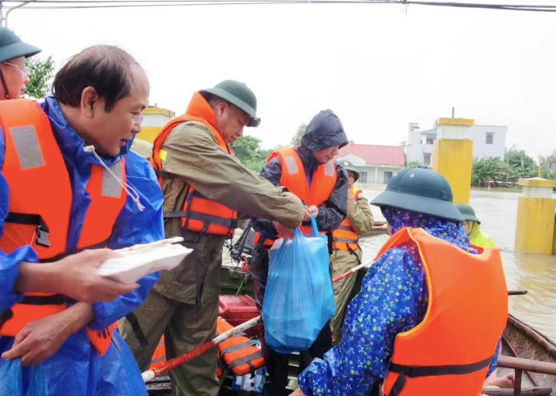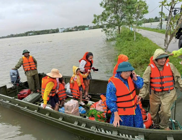 Ngay sau khi nhận lệnh, đơn vị đã huy động hàng chục cán bộ, chiến sỹ cùng xuồng máy, áo phao và trang thiết bị chuyên dụng nhanh chóng tiếp cận các khu vực ngập sâu.