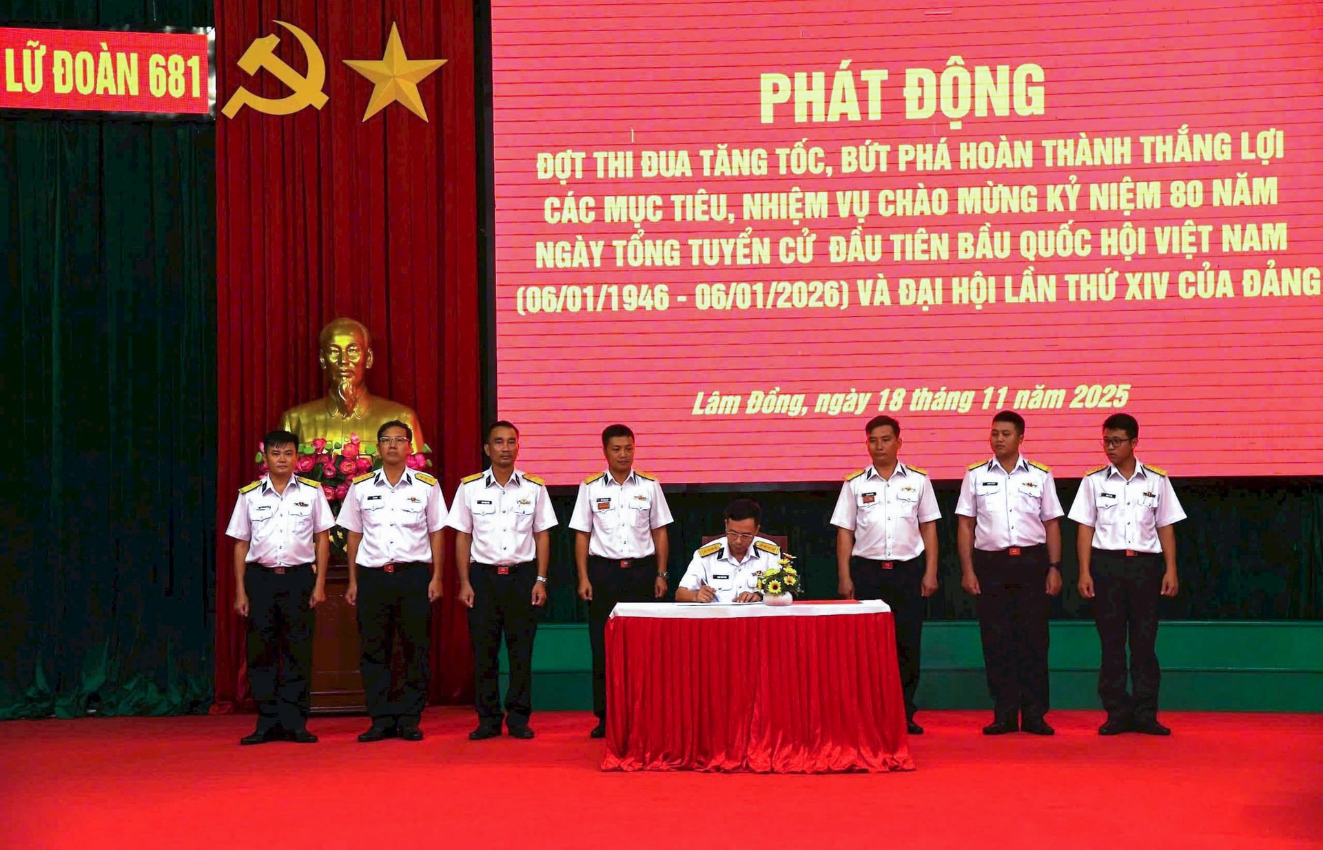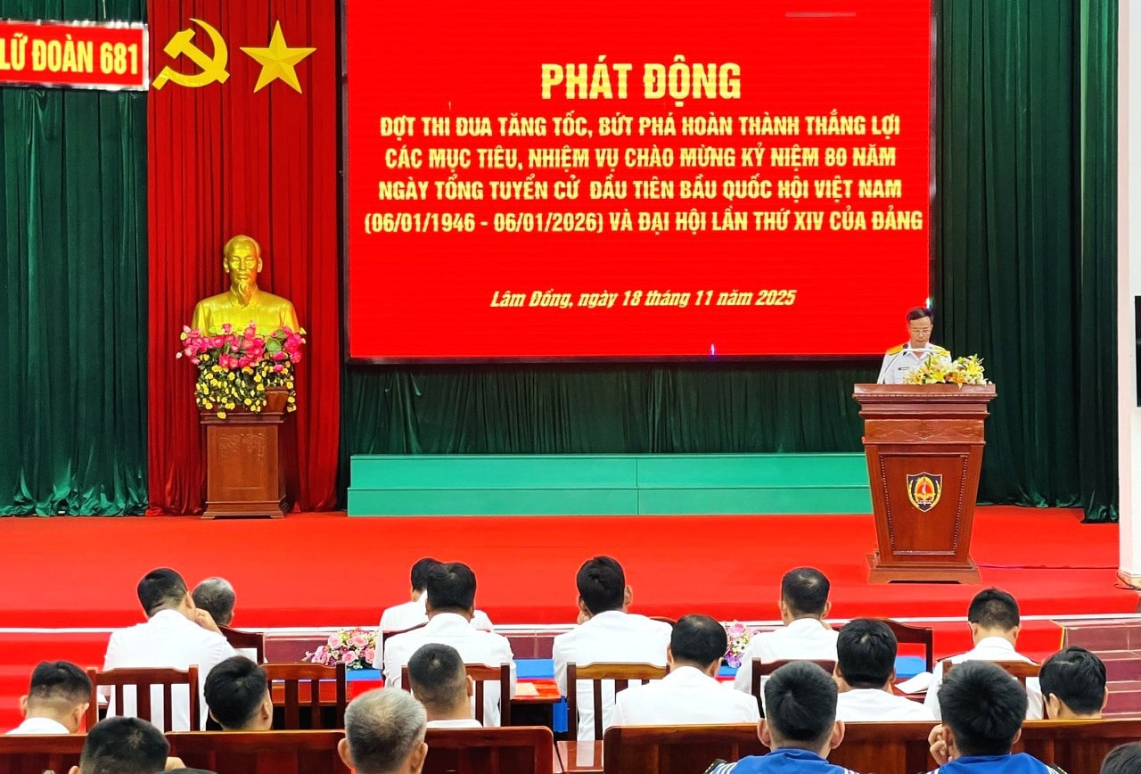 Ngay sau phần thông báo nhanh kết quả Hội nghị Trung ương 14, Lữ đoàn 681 tổ chức phát động đợt thi đua tăng tốc, bứt phá hoàn thành thắng lợi các mục tiêu, nhiệm vụ chào mừng kỷ niệm 80 năm Ngày Tổng tuyển cử đầu tiên bầu Quốc hội Việt Nam (06/01/1946 - 06/01/2026) và Đại hội lần thứ XIV của Đảng. Đợt thi đua diễn ra từ ngày 20/11/2025 - 31/1/2026, với chủ đề “40 ngày đêm hành động kiểu mẫu, tăng tốc, bứt phá, hoàn thành xuất sắc mọi nhiệm vụ được giao”.