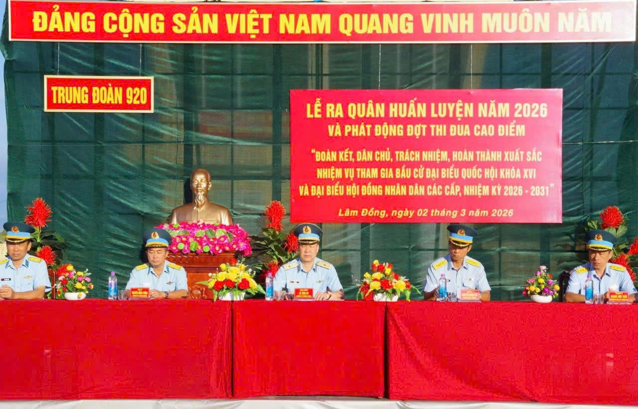 Cùng ngày, tại Sân bay Phan Thiết (Lâm Đồng), Trung đoàn 920 (Trường Sĩ quan Không quân) tổ chức Lễ ra quân huấn luyện năm 2026 và phát động đợt thi đua cao điểm. Thiếu tướng Lê Văn Uy, Chính ủy Trường Sĩ quan Không quân dự và chủ trì buổi lễ.