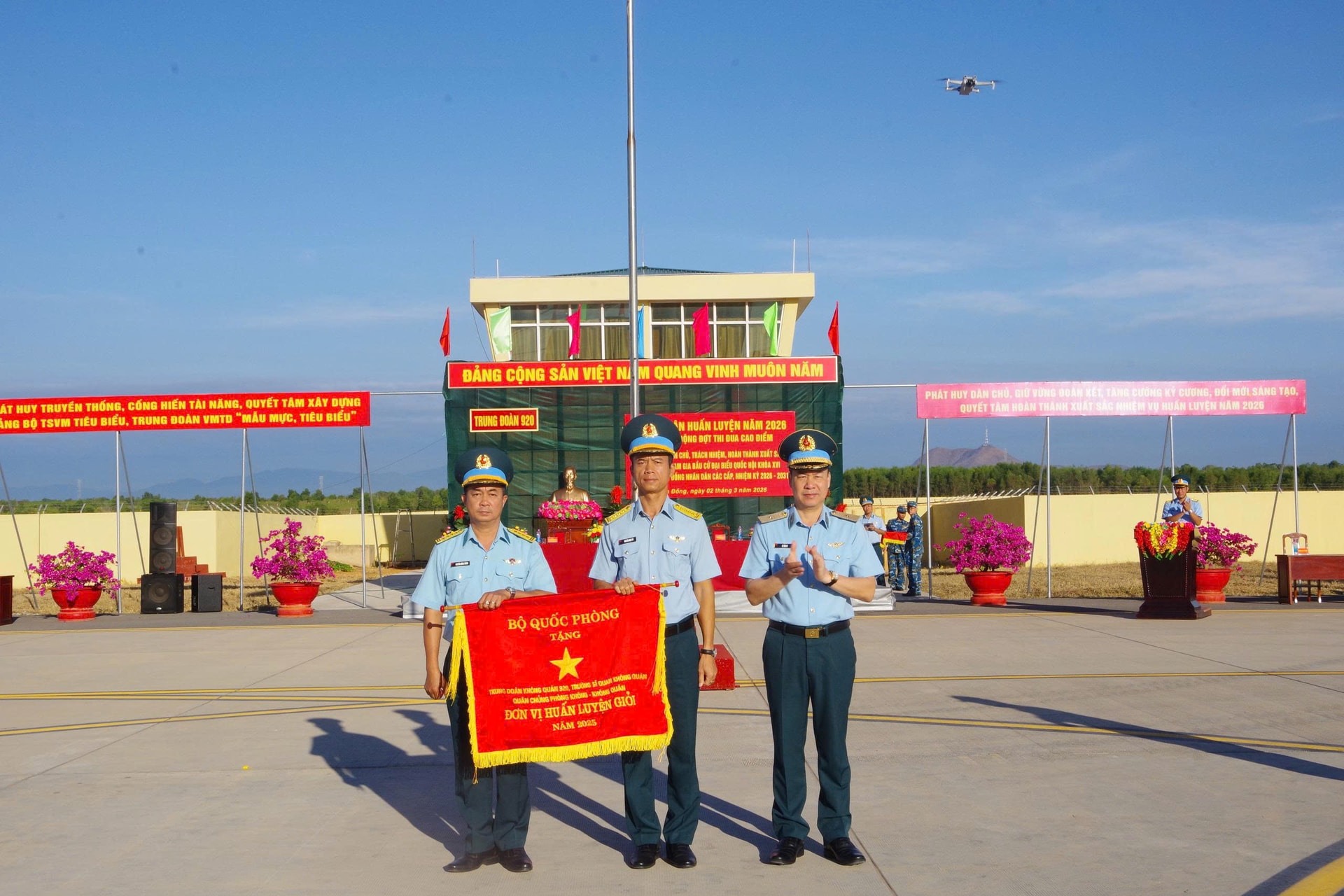 Thiếu tướng Lê Văn Uy, Chính ủy Trường Sĩ quan Không quân trao cờ đơn vị Huấn luyện giỏi năm 2025 tặng Trung đoàn