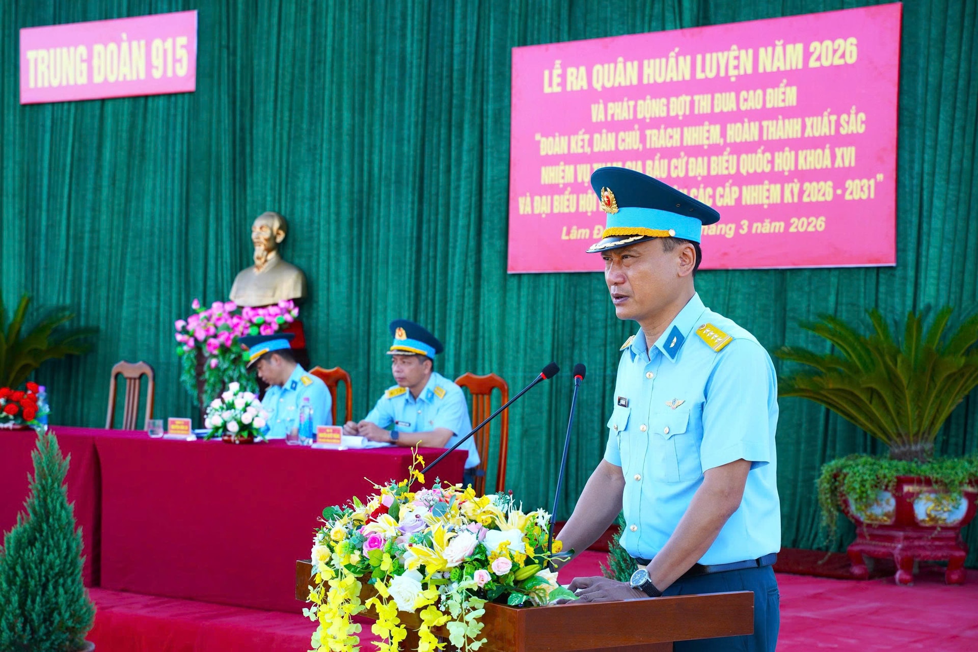 Phát biểu chỉ đạo tại Lễ ra quân huấn luyện, Đại tá Lại Công Hoan, Phó Hiệu trưởng Huấn luyện - Đào tạo Trường Sĩ quan Không quân biểu dương tinh thần đoàn kết, nỗ lực vượt khó, chủ động, sáng tạo của cán bộ, chiến sĩ Trung đoàn 915 trong thực hiện nhiệm vụ. Nổi bật, năm 2025, Trung đoàn 915 được tặng danh hiệu Đơn vị Quyết thắng, đơn vị vững mạnh toàn diện “Mẫu mực, tiêu biểu”, đơn vị huấn luyện giỏi.