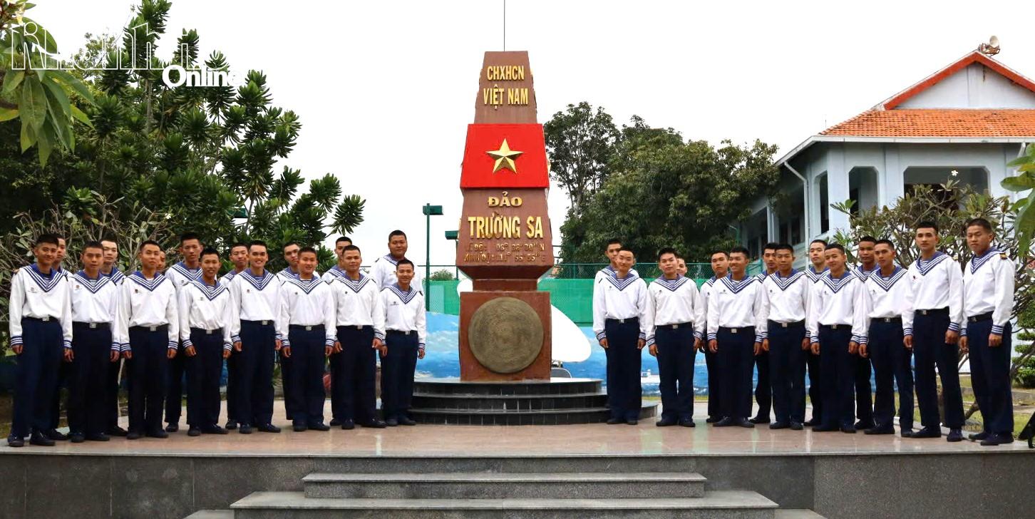 Các chiến sĩ chuẩn bị xuất ngủ chụp hình lưu niệm tại bia chủ quyền