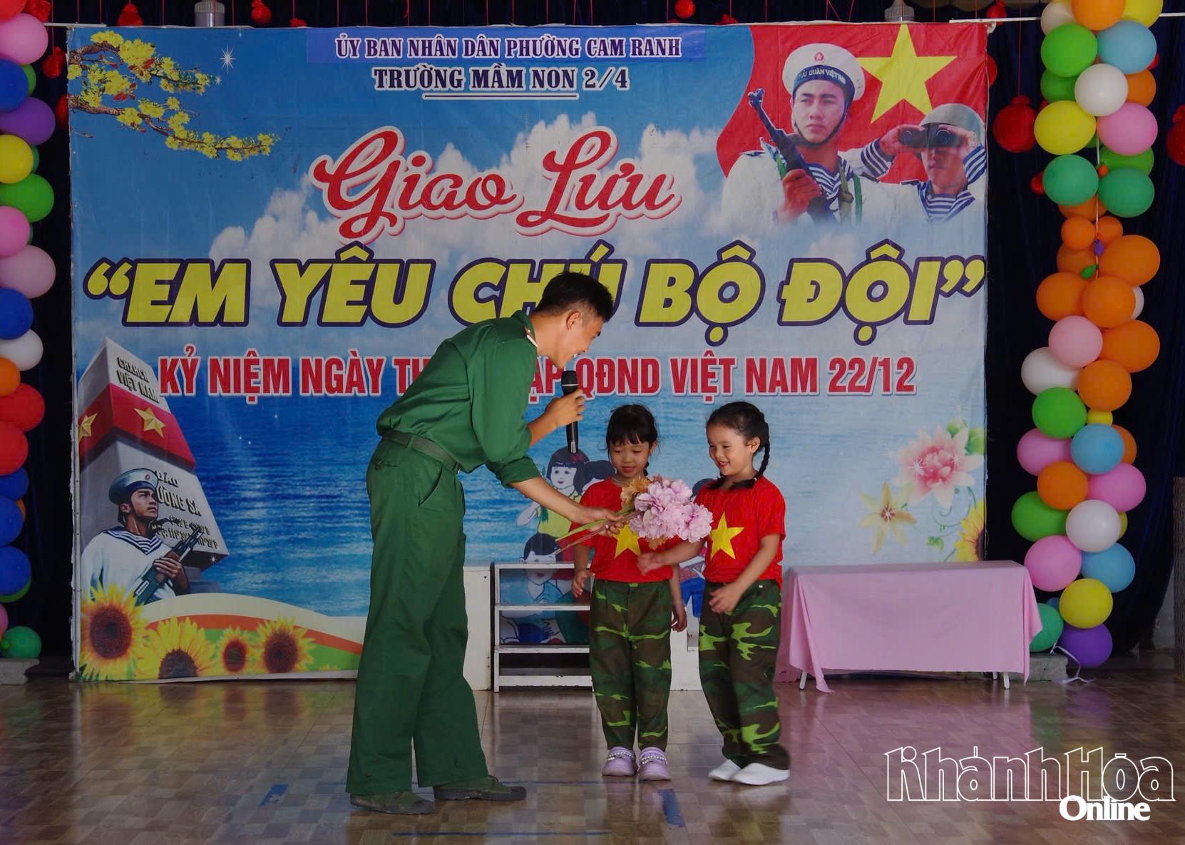 Nhân dịp kỷ niệm 81 năm Ngày thành lập Quân đội nhân dân Việt Nam (22-12-1944 - 22-12-2025), 36 năm Ngày hội Quốc phòng toàn dân (22-12-1989 - 22-12-2025) và 80 năm Ngày thành lập Binh chủng Công binh (25-3-1946 - 25-3-2026), ngày 19-12, Lữ đoàn Công binh 293 phối hợp với Trường Mầm non 2-4 (phường Cam Ranh) tổ chức chương trình giao lưu với chủ đề “Em yêu chú bộ đội”. Tham gia giao lưu có đông đảo cán bộ, giáo viên, phụ huynh, các bé Trường Mầm non 2-4 và đại diện cán bộ, chiến sĩ lữ đoàn.