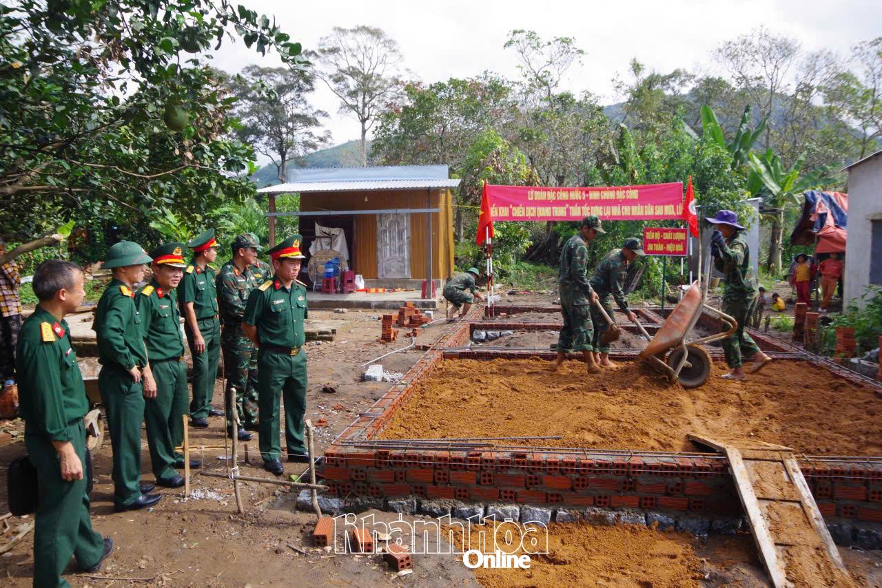Khi nước lũ rút, bùn đất còn phủ dày, cán bộ, chiến sĩ lữ đoàn tiếp tục triển khai nhiệm vụ trong “Chiến dịch Quang Trung” thần tốc xây dựng, sửa chữa nhà ở cho người dân vùng lũ. Lữ đoàn đã thành lập 15 tổ xây dựng và 2 tổ sửa chữa với 237 cán bộ, chiến sĩ tiến hành xây mới 21 căn nhà, sửa chữa 9 căn nhà cho các hộ dân vùng lũ tại 9 xã, phường trên địa bàn tỉnh. Những ngôi nhà hoàn thành không chỉ khắc phục hậu quả thiên tai, mà còn là biểu tượng của nghĩa tình quân dân trong hoạn nạn. Ngoài ra, đơn vị còn tặng nhiều thiết bị, vật dụng sinh hoạt với tổng trị giá hàng trăm triệu đồng cho các gia đình tại lễ bàn giao nhà, giúp các gia đình có thêm điều kiện ổn định đời sống sau thiên tai.
