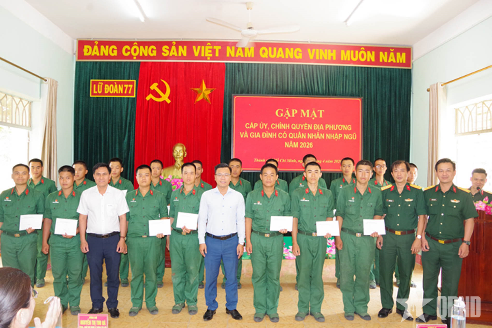 Phát biểu tại buổi gặp mặt, Thượng tá Lê Duy Hào, Phó chính ủy Lữ đoàn Phòng không 77 đã cảm ơn sự quan tâm của lãnh đạo cấp ủy, chính quyền, nhân dân địa phương đã đồng hành cùng đơn vị trong quá trình tiếp nhận và huấn luyện chiến sĩ mới. Đồng thời biểu dương cán bộ, chiến sĩ các đơn vị đã tích cực, chủ động khắc phục khó khăn, hoàn thành tốt nhiệm vụ.