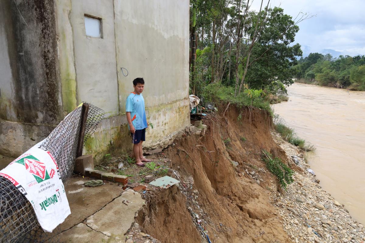 Theo ông Thạnh, những năm trước thiên tai, lũ lụt thường xuyên, nhưng không sạt lở. Từ khi thủy điện hoạt động, sạt lở xảy ra mỗi năm một ít. Riêng đợt lũ vừa qua sạt lở rất nhanh, tới sát móng nhà. "Trước đây đất sau vườn còn khoảng 20 mét mới đến mép sông. Thế nhưng nay đã sạt lở tất cả. Nhà tôi giờ chỉ còn đứng tạm, chênh vênh bên miệng sông. Mỗi trận mưa lớn là cả nhà di dời đi chỗ khác ở, còn nhà cửa lại lo sẽ bị hà bá nuốt luôn. Bao nhiêu năm tích góp để làm nhà, sắm các vật dụng coi như đổ sông, đổ biển. Chúng tôi mong được hỗ trợ để di dời đi nơi khác, có nơi ở an toàn", ông Thạnh nói.