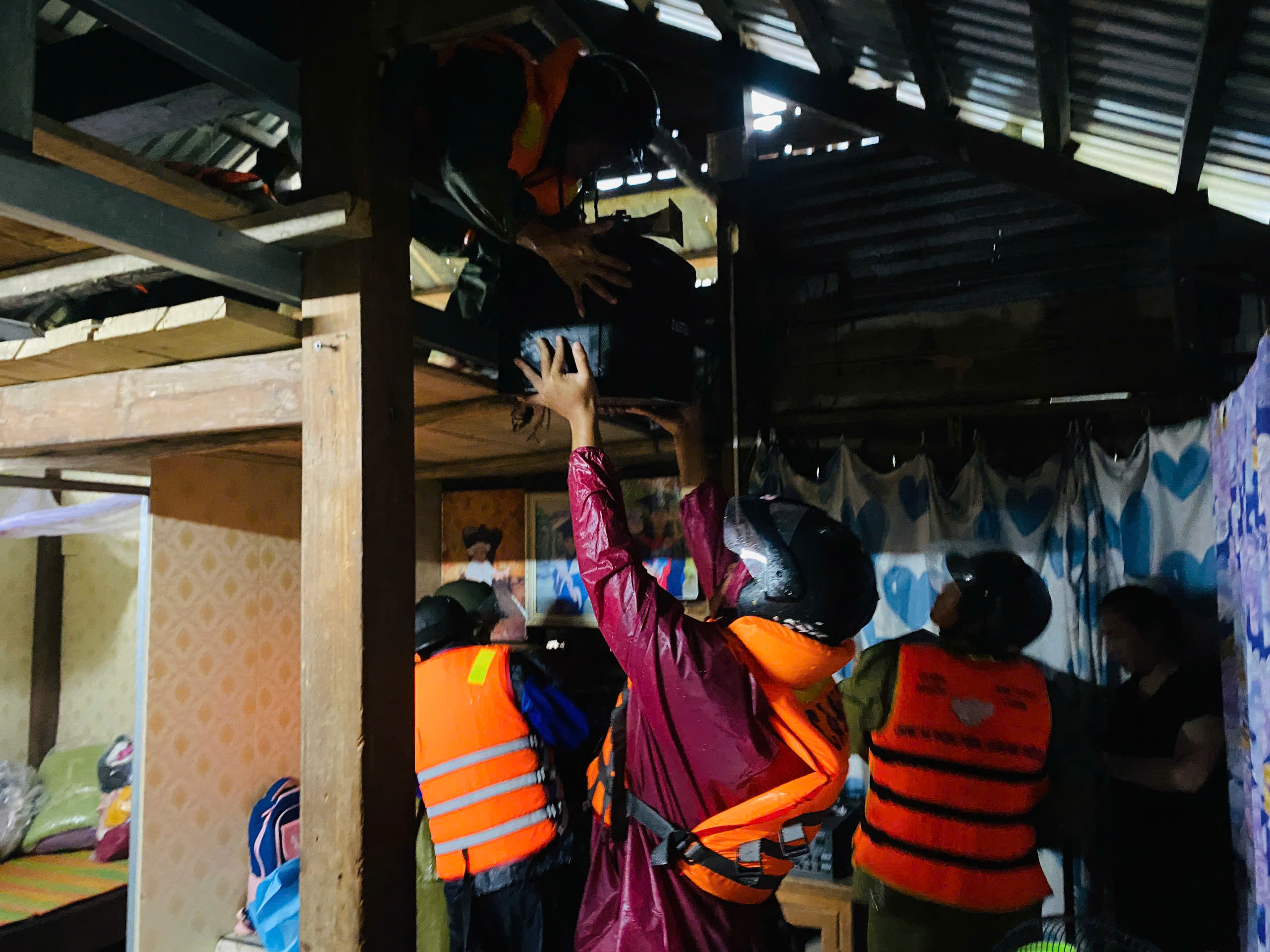 Lực lượng chức năng xã Thượng Đức giúp dân di dời tài sản lên cao