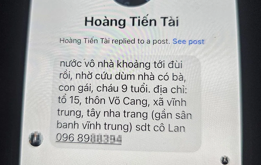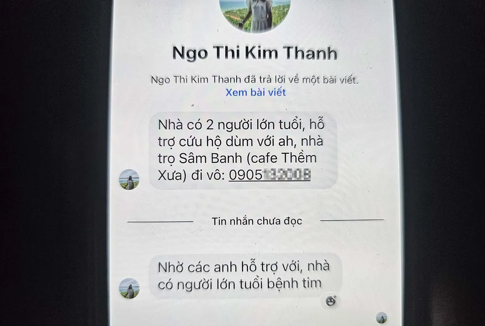 "Nhà có hai người lớn tuổi. Hỗ trợ cứu dùm với ạ. Em ở khu nhà trọ Sâm Banh" - chị Ngô Thị Kim Thanh cầu cứu.