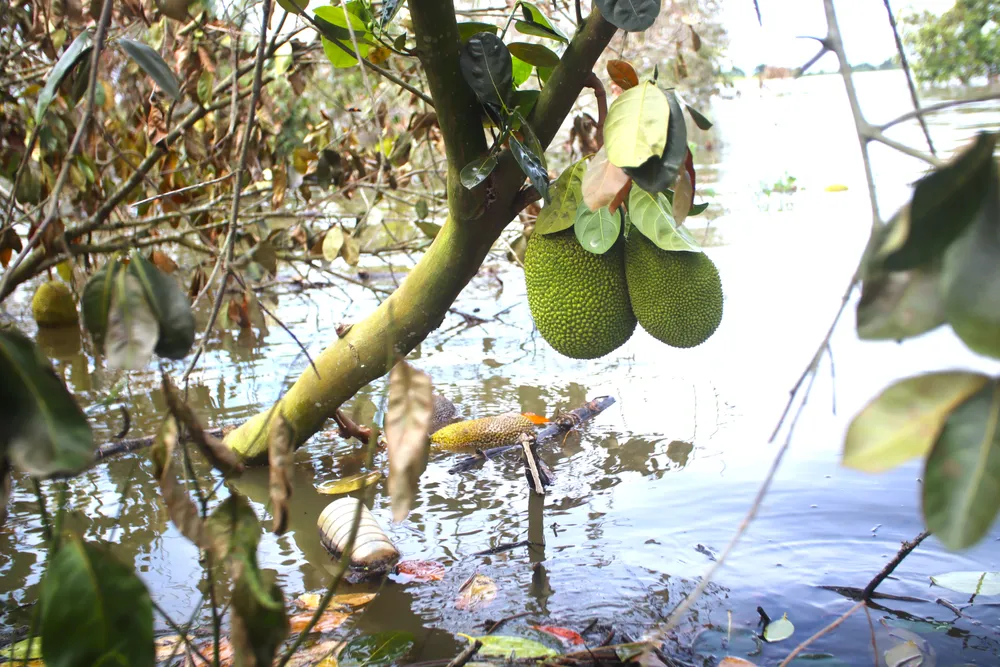 Những gốc mít bị chìm sâu trong nước. Ảnh: HUỲNH DU