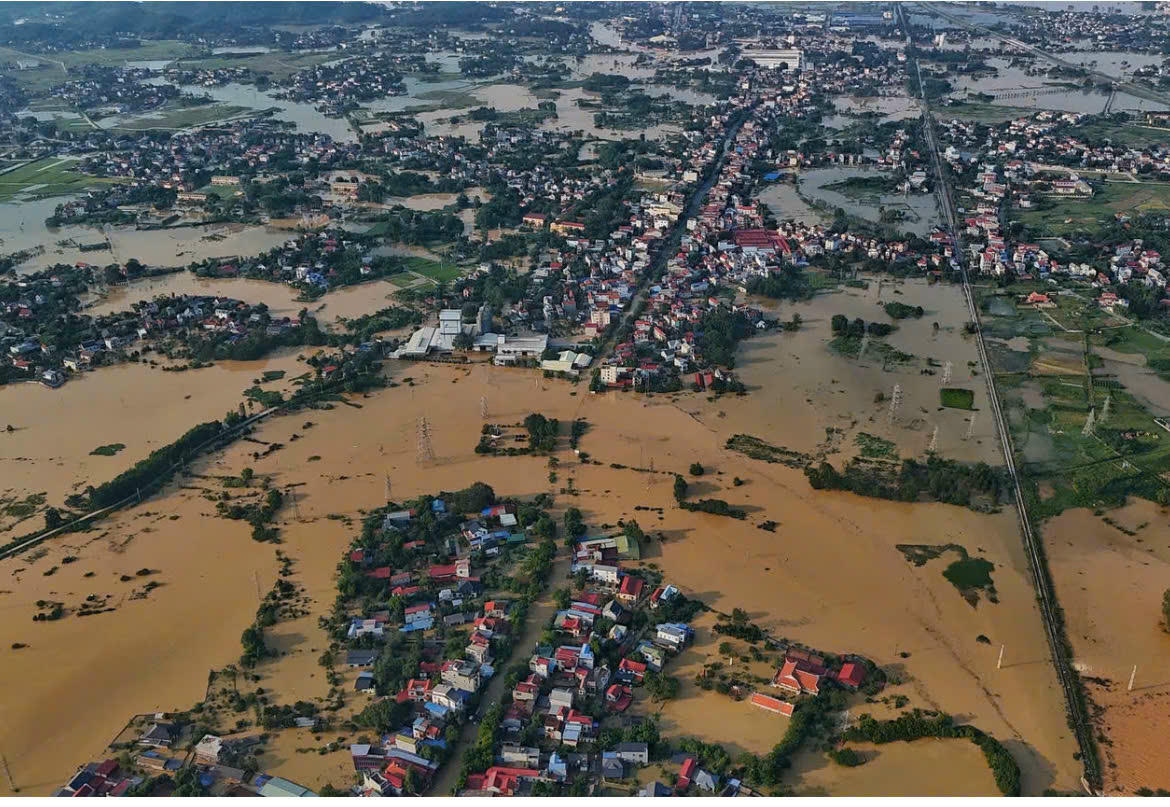 Xã Trung Giã (Hà Nội) chìm trong nước lũ. Ảnh: Lê Khánh