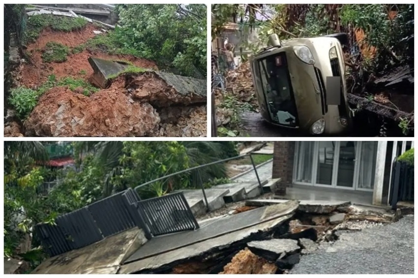 Sạt lở đất tại quận Seputeh, thủ đô Kuala Lumpur gây thiệt hại cho tài sản, phương tiện của người dân. Ảnh: Malaymail