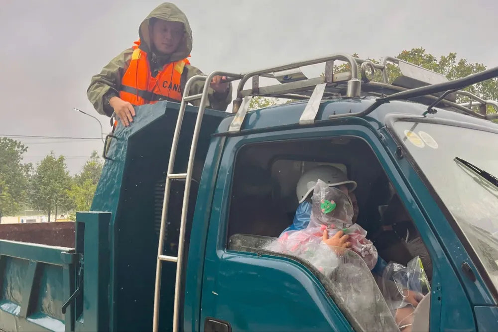 Lực lượng chức năng hỗ trợ sơ tán, đưa người dân ở khu vực xung yếu đến nơi an toàn.