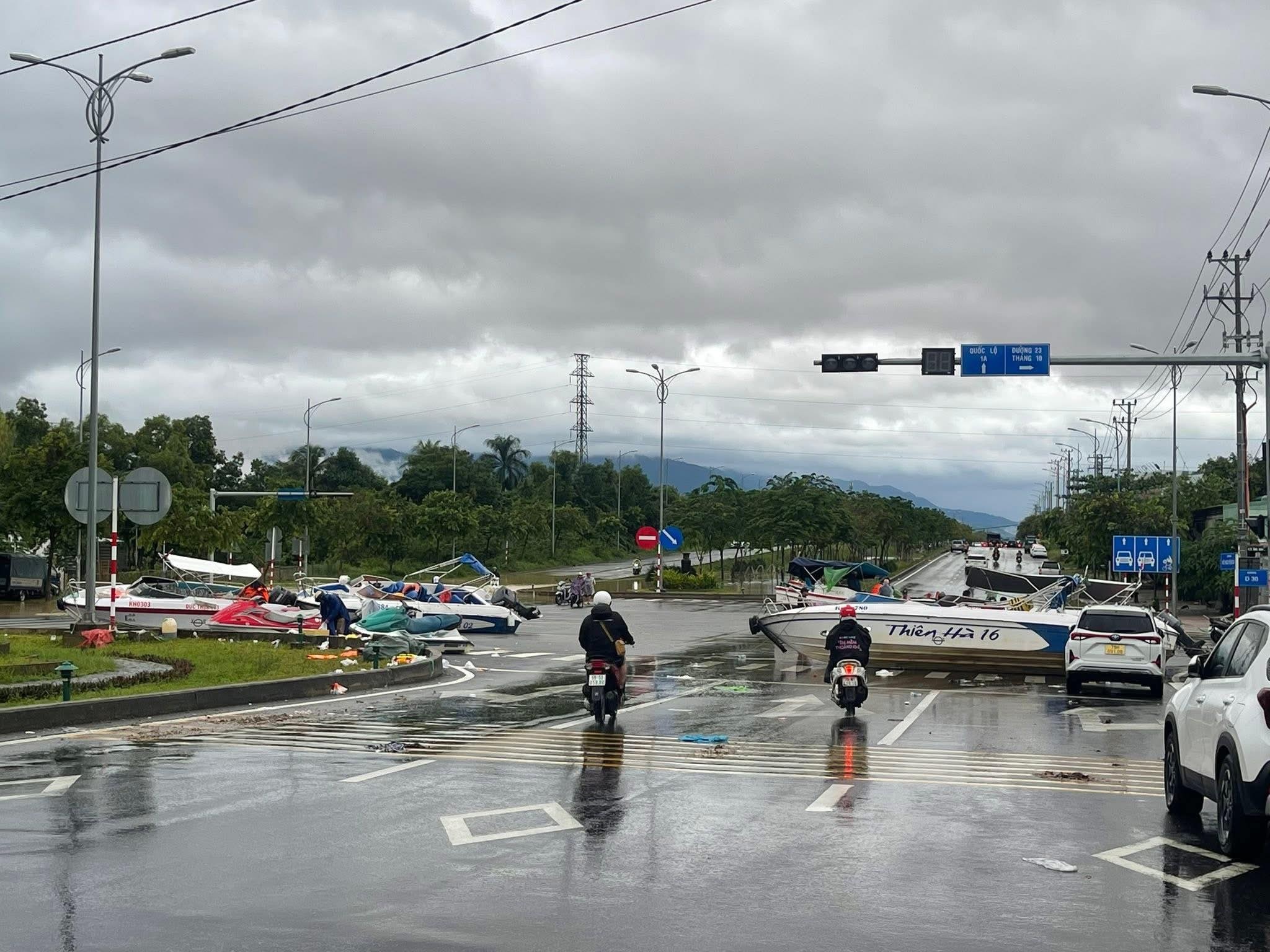 Khoảng 7h sáng 21/11 trên đường Võ Nguyên Giáp, nước cũng đã rút dần, trả lại không gian thông thoáng. Người dân cho biết dù mực nước giảm, bùn đất và rác trôi về dày đặc khiến việc dọn dẹp trở nên khó khăn. Dù nước rút là tín hiệu đáng mừng, dự báo thời tiết cho thấy mưa lớn có thể tiếp tục trong ngày, dẫn tới nguy cơ tái ngập hoặc sạt lở tại các khu vực ven sông và triền núi. Ảnh: Trần Ny.
