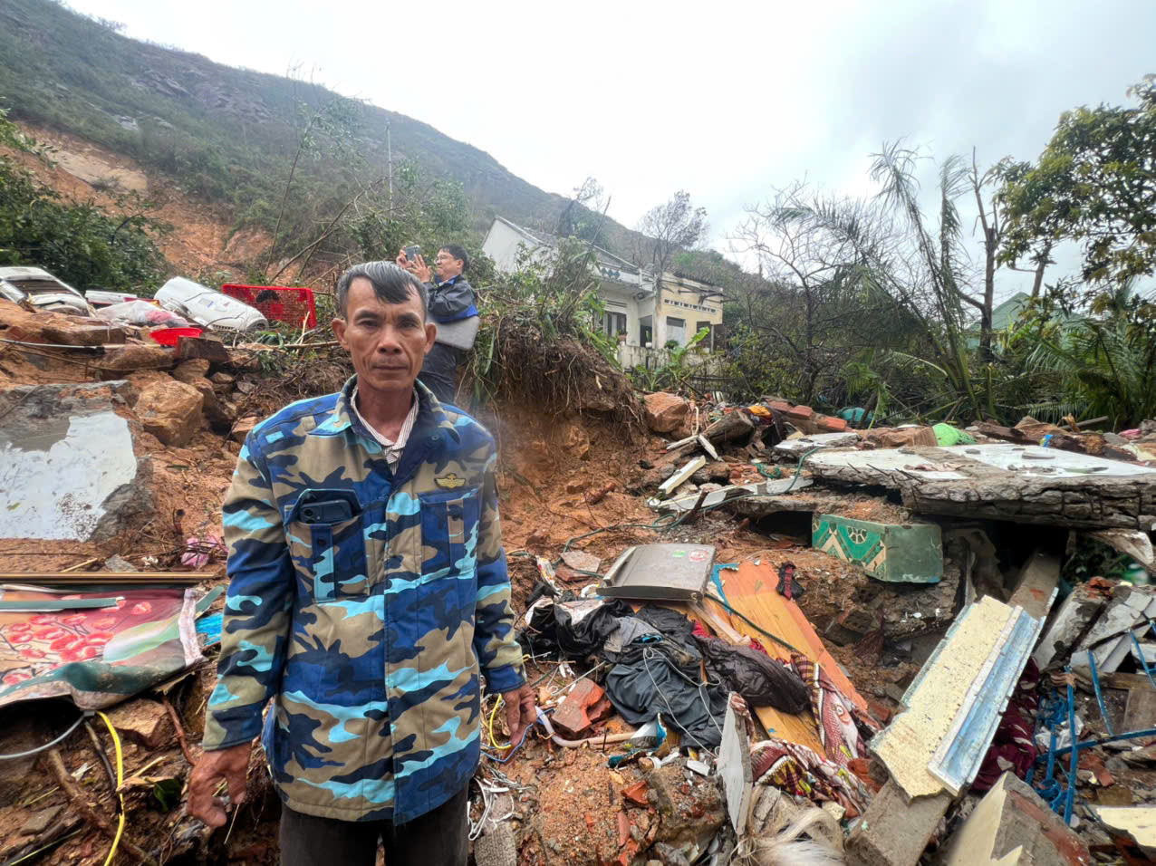 Cạnh đó, ông Nguyễn Chừ, một ngư dân làng chài, vẫn còn run khi nhớ lại phút cứu hộ: “Núi sạt lở ầm ầm… trôi thẳng xuống nhà. Bà con chạy tới dùng xô, dùng tay mà hốt đất… Phát hiện bàn tay bà thò ra khỏi lớp đất… Trong nhà bóng điện vẫn sáng, nhưng bà thì… không còn nữa.”