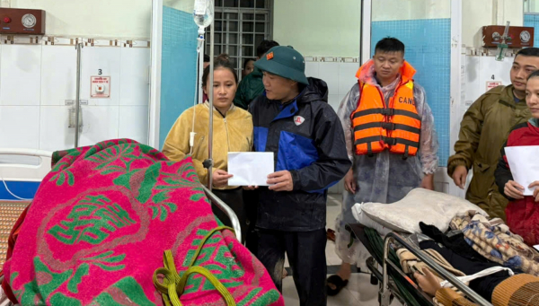 Lãnh đạo xã Trà Tân thăm hỏi, động viên người thân các bệnh nhân tại TTYT khu vực Bắc Trà My.