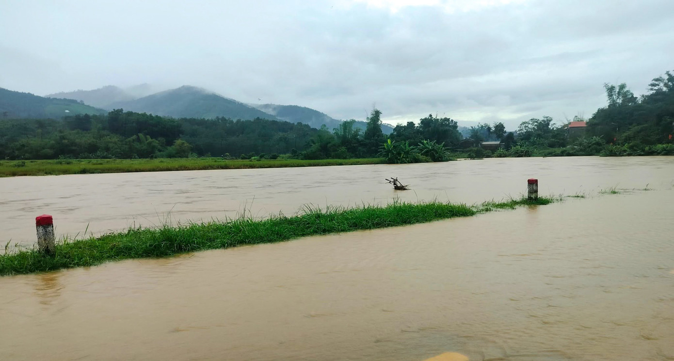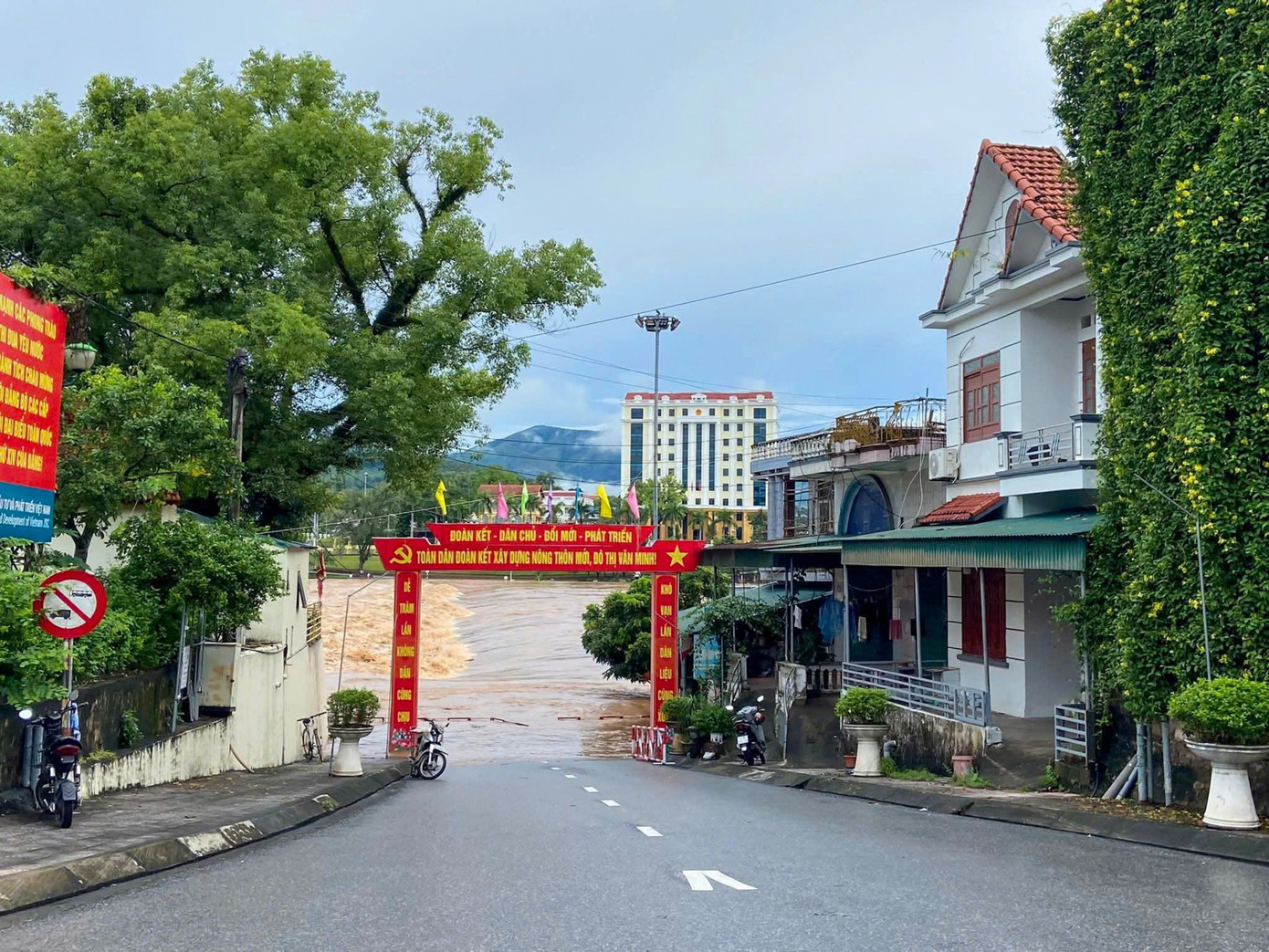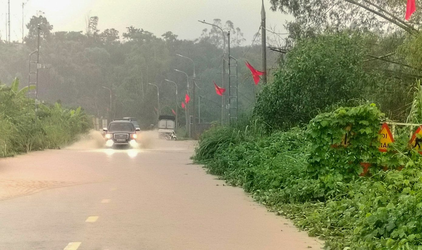 Nước từ các sông, suối dâng cao tràn lên mặt đường khiến việc đi lại của người dân gặp nhiều khó khăn.