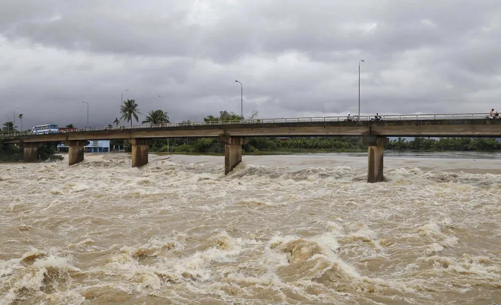 Lũ trên sông Cái Nha Trang tiếp tục vượt đỉnh lũ vào trưa 19-11. Ảnh: XH