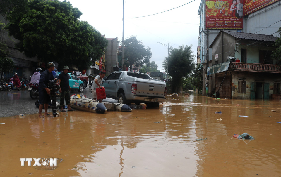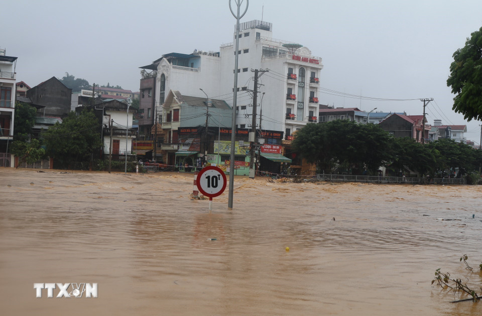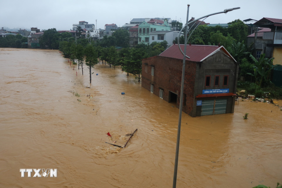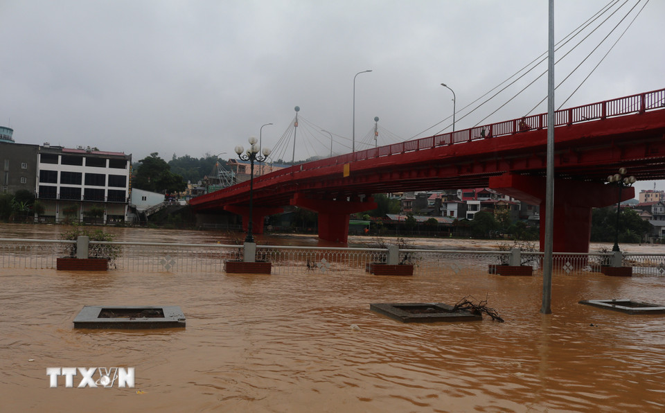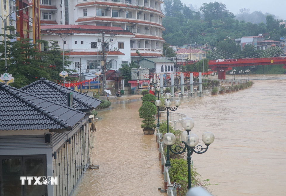 Các tuyến phố bên sông đang bị ngập lụt. (Ảnh: Chu Hiệu/TTXVN)