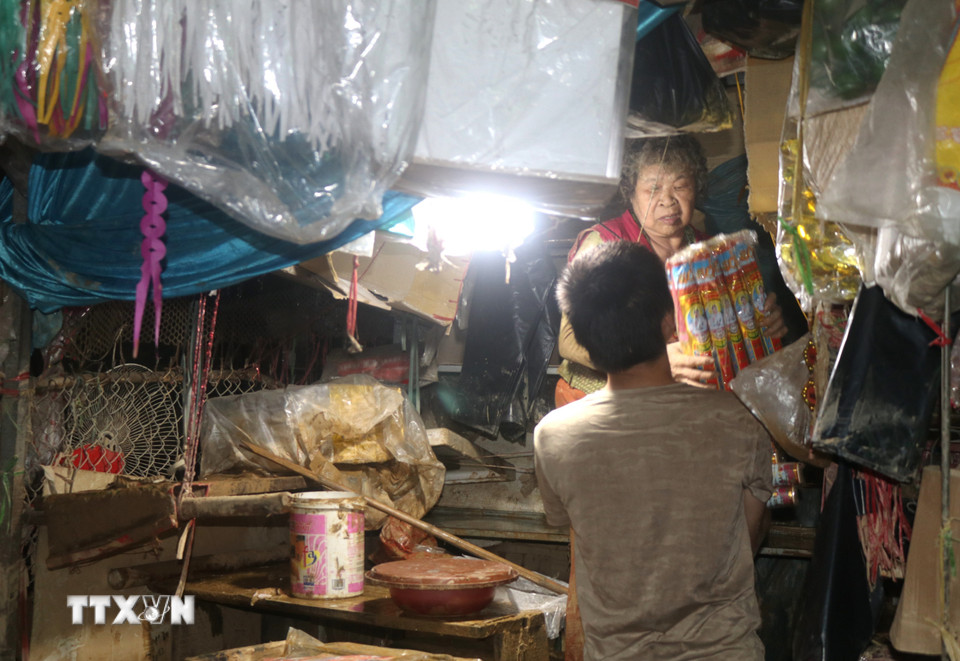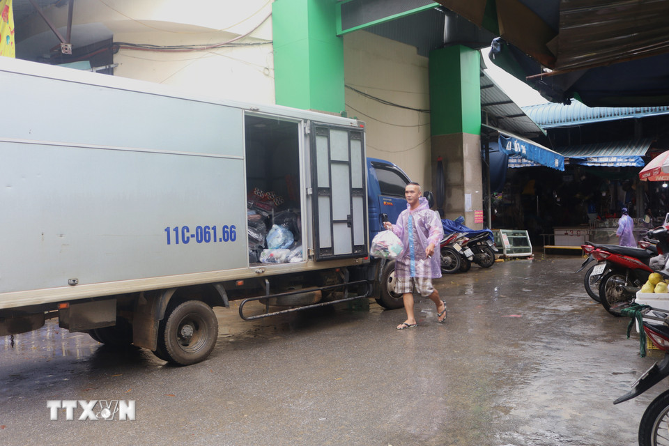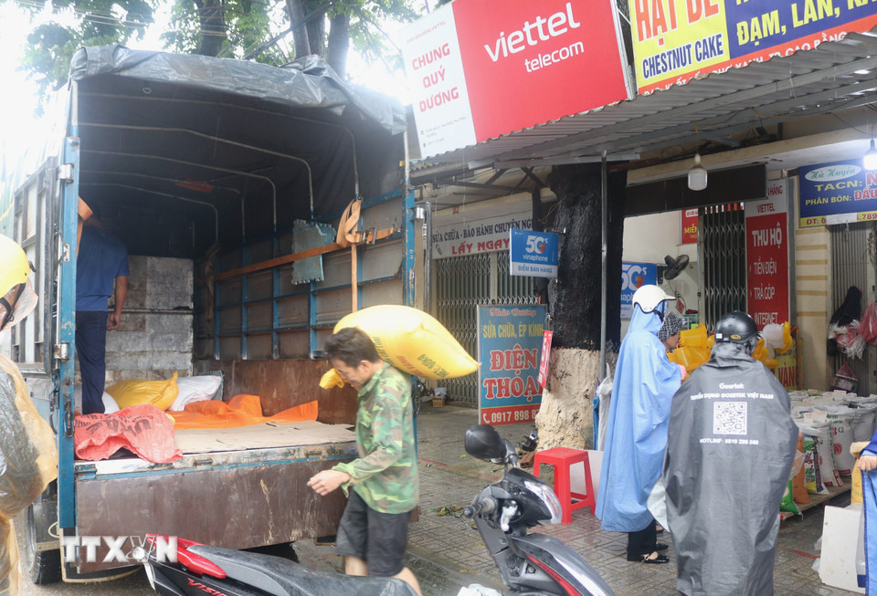 Người dân khẩn trương di dời tài sản ra khỏi vùng nguy cơ ngập lụt. (Ảnh: Chu Hiệu/TTXVN.)