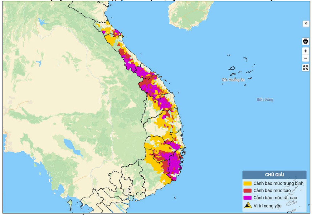 Nguy cơ ngập lụt diện rộng diễn ra tại các tỉnh/thành phố từ Quảng Trị đến Khánh Hòa.