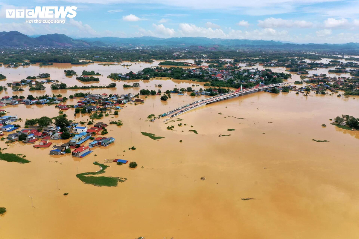 Sau 2 ngày mưa lớn, Thái Nguyên vẫn ngập lụt diện rộng. (Ảnh: Viên Minh)