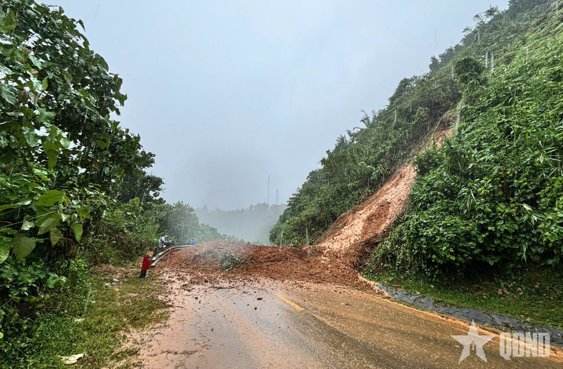 Đường Hồ Chí Minh qua địa phận xã A Vương bị sạt lở.