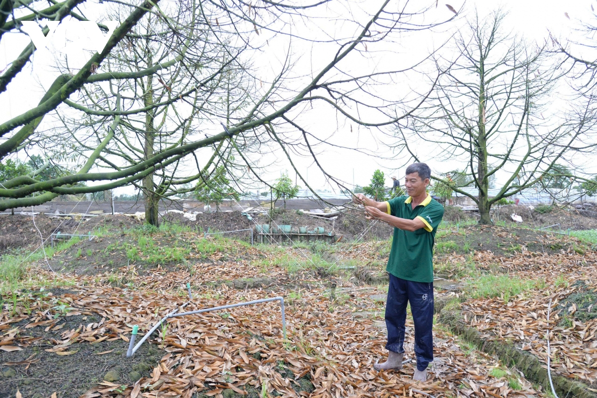 Để cứu cây, ông Trí phải thuê người cắt bỏ trái non, khẩn trương bơm nước ra ngoài để mong cứu được những cây sầu riêng đang rụng hết lá. Nhìn vườn sầu riêng xơ xác, trơ trọi cành lá, ai cũng thấy xót xa khi công sức và tiền của nhà nông như đã mất trắng.