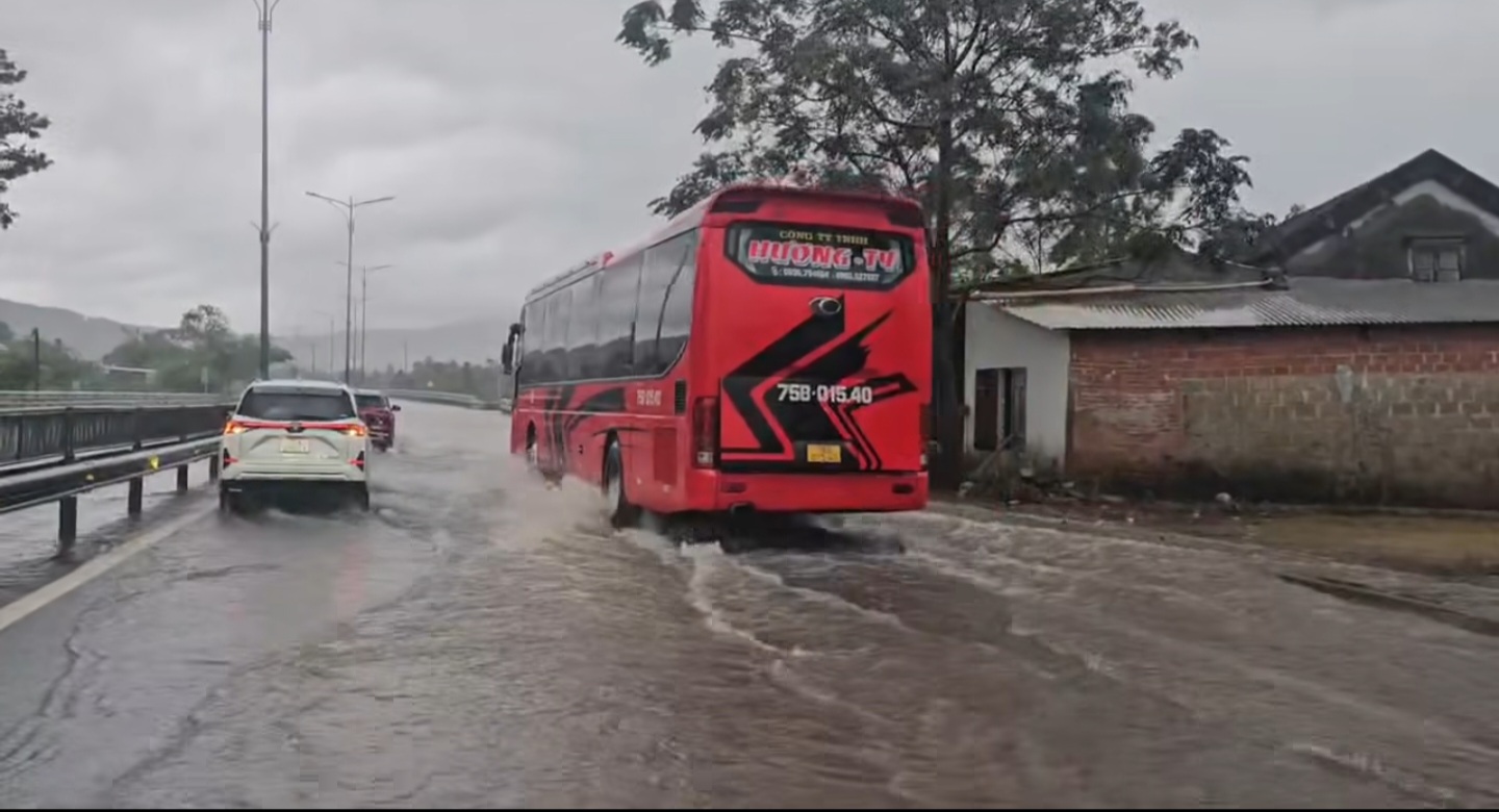 Mưa lớn gây ngập quốc lộ 1A qua địa bàn xã Phú Lộc