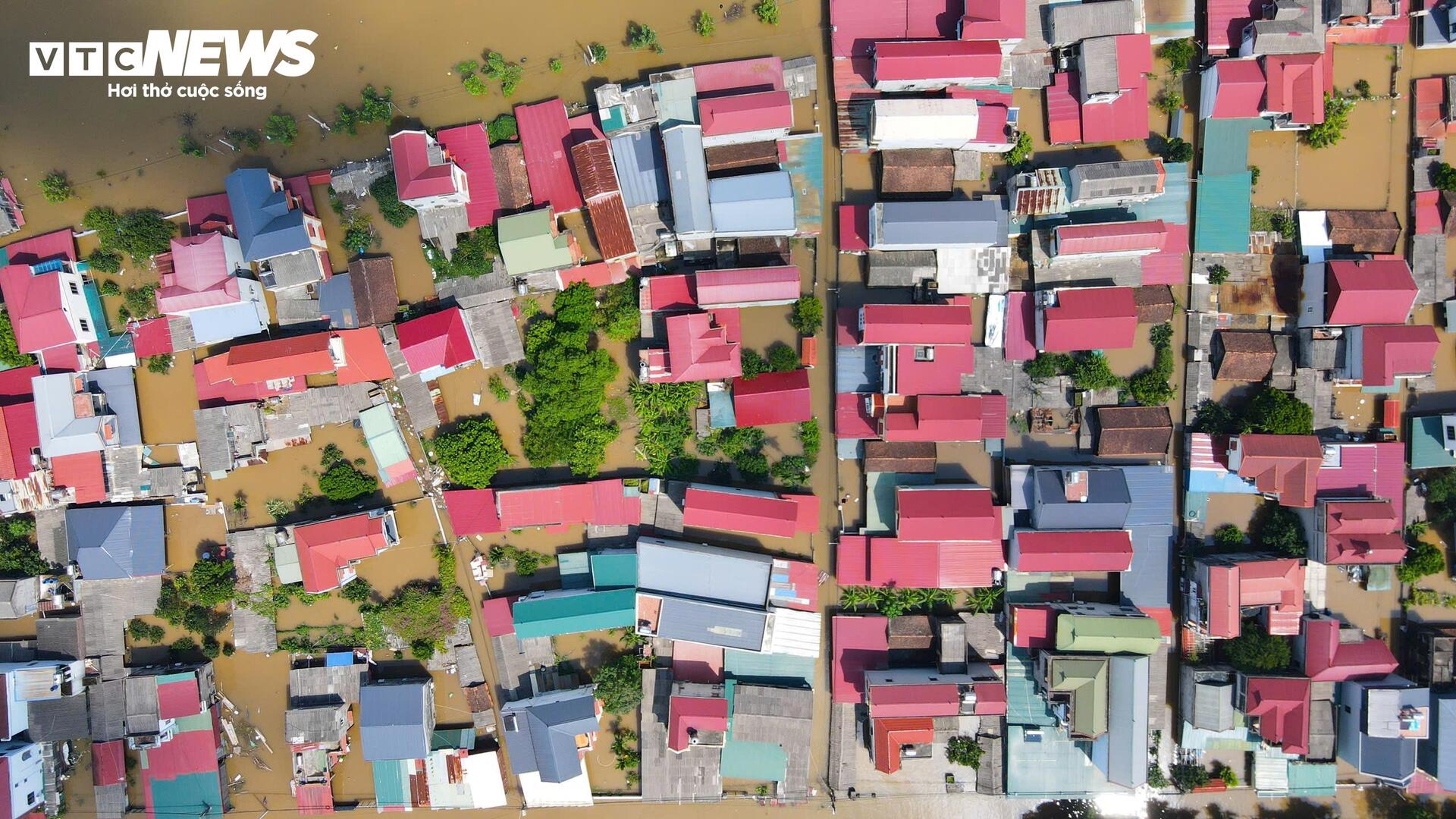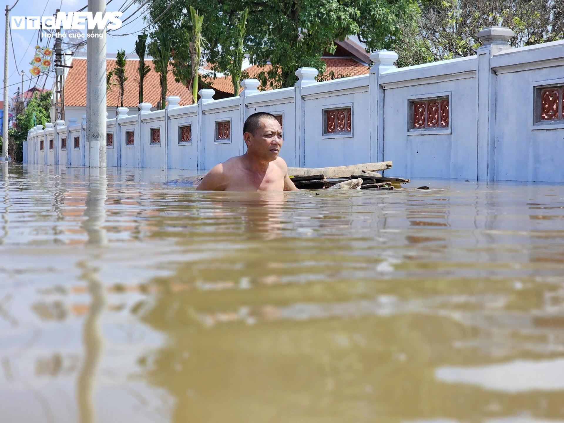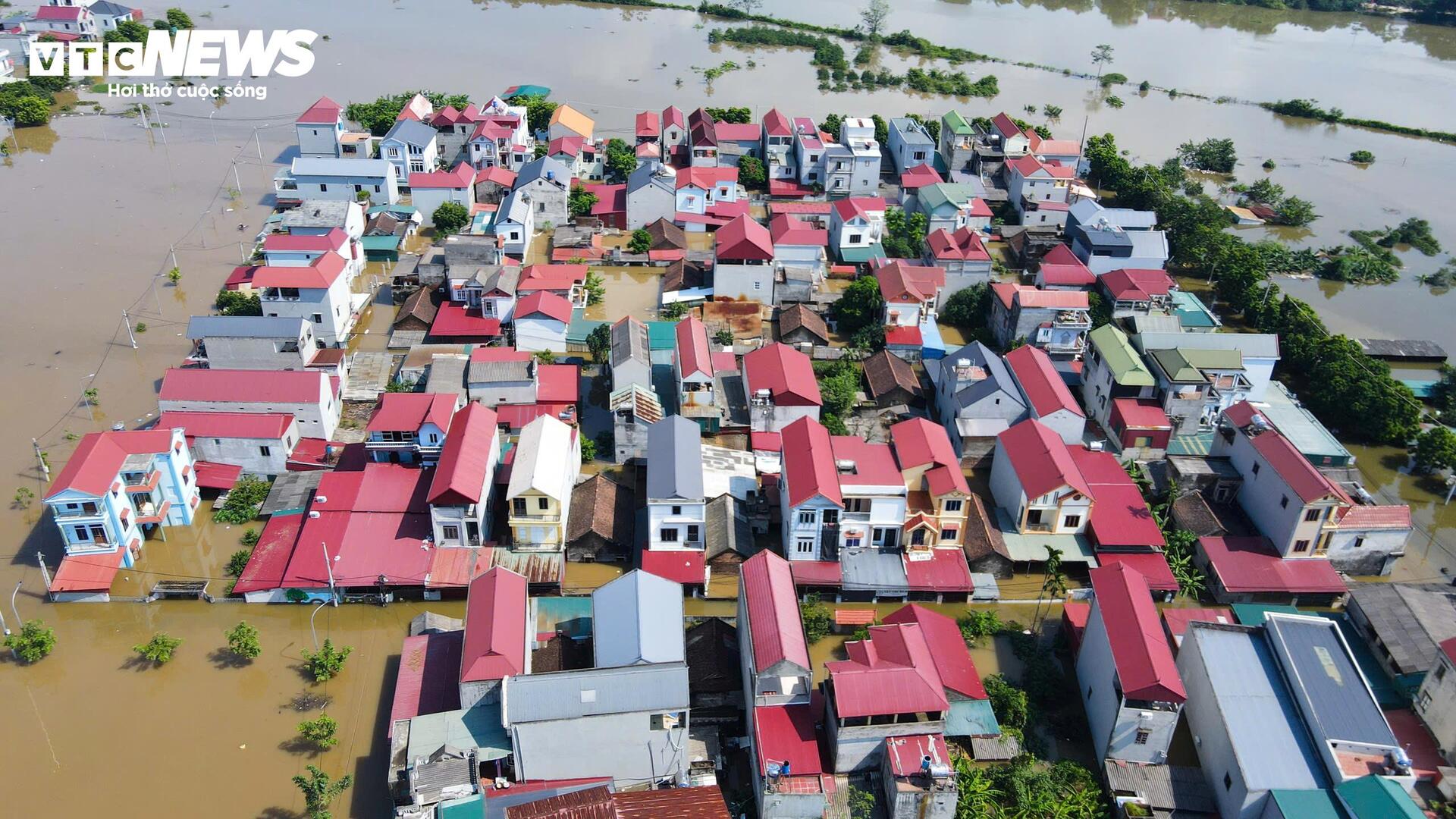 Thôn Kim Tiên, xã Thư Lâm (Hà Nội) đang phải gánh chịu những hậu quả nặng nề nhất của trận lụt lịch sử. Cả khu dân cư bị cô lập hoàn toàn, chìm sâu trong biển nước đục ngầu, biến nhà cửa, đường làng thành những "ốc đảo" mong manh. Cuộc sống người dân bị đảo lộn chưa từng có.