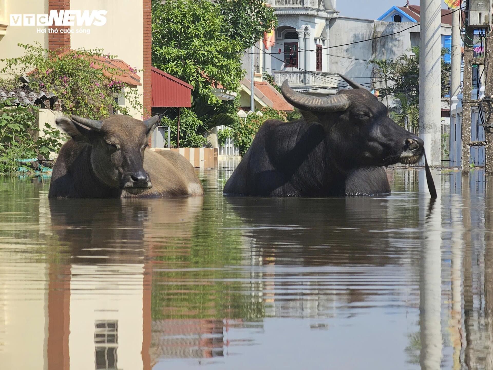 Nước lũ dâng lên quá nhanh và đột ngột, khiến người dâ không kịp trở tay di chuyển đồ đạc và vật nuôi. Toàn bộ vườn tược, chuồng trại bị nhấn chìm.