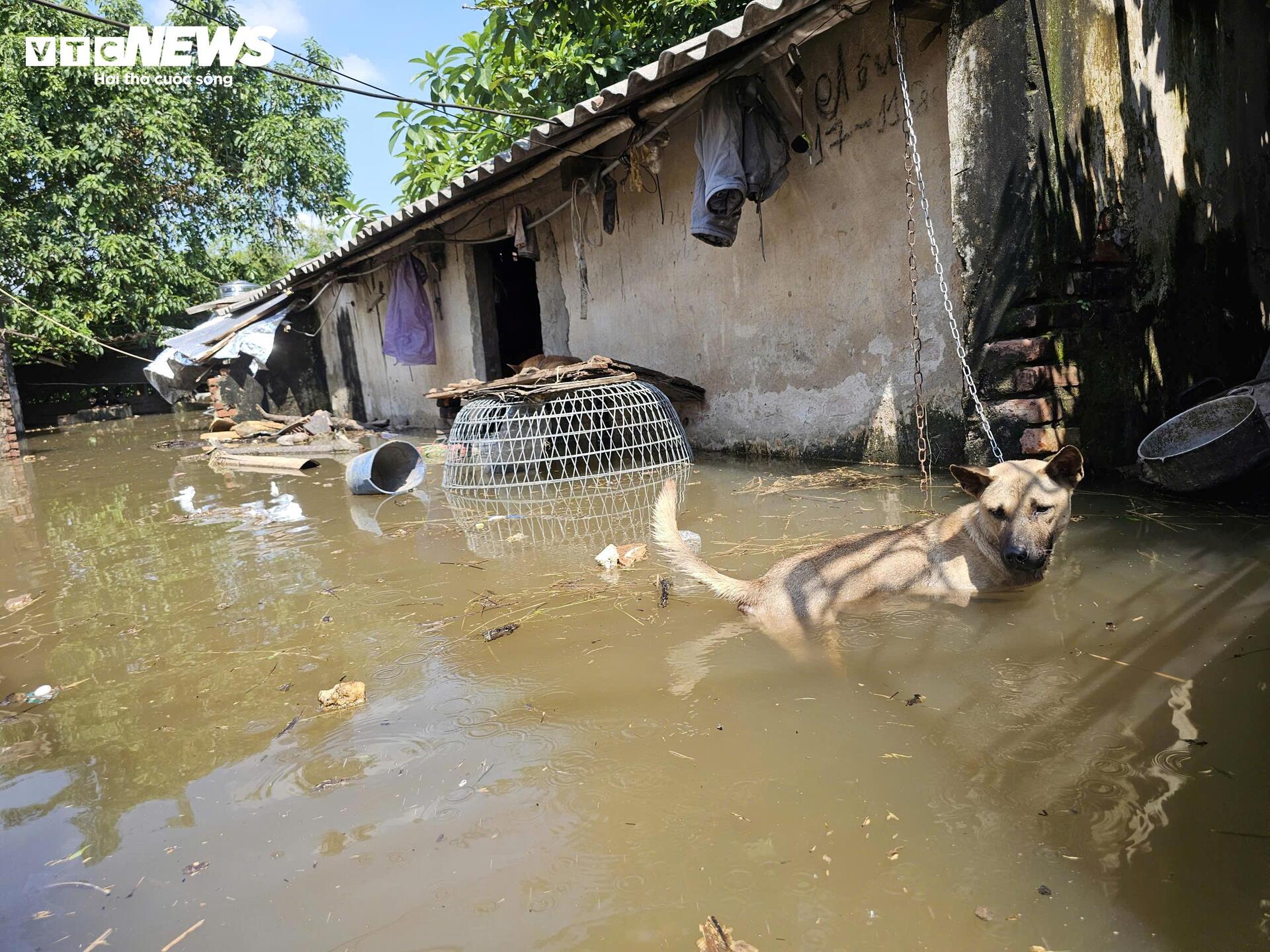 Trong cuộc đua chạy lũ khốc liệt, người dân thôn Kim Tiên buộc phải tạm thời bỏ lại nhiều vật nuôi với hy vọng chúng có thể tự tìm nơi trú ẩn.