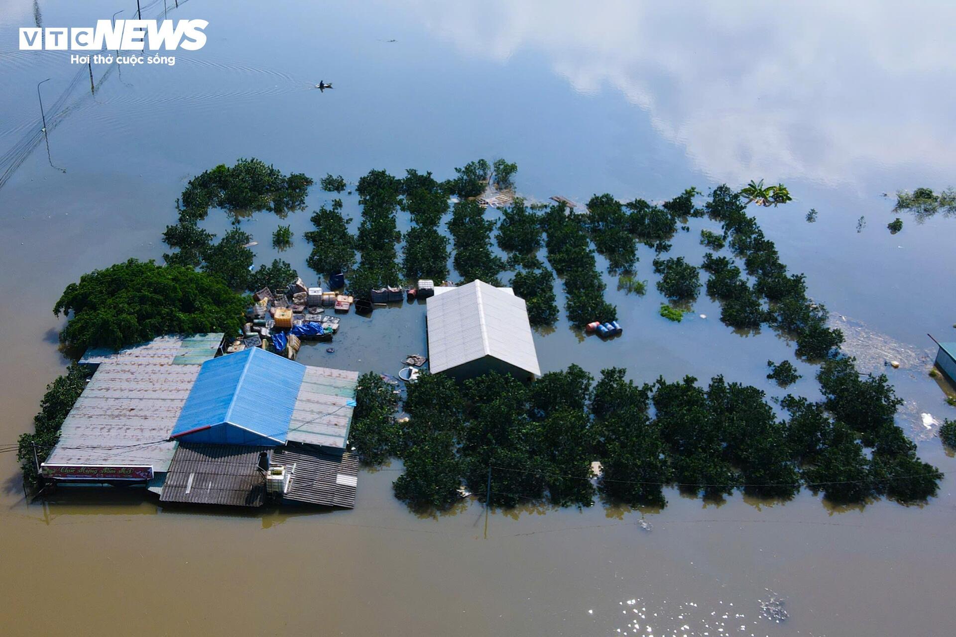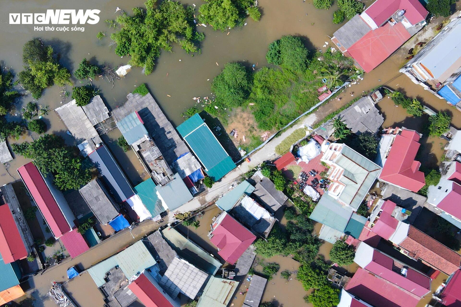 Tới 12h ngày 9/10, nhiều khu vực thuộc xã Thư Lâm chìm sâu trong làn nước lũ. Có những nơi nước cao tới 4-5m, khiến hàng loạt thôn xóm bị cô lập hoàn toàn.