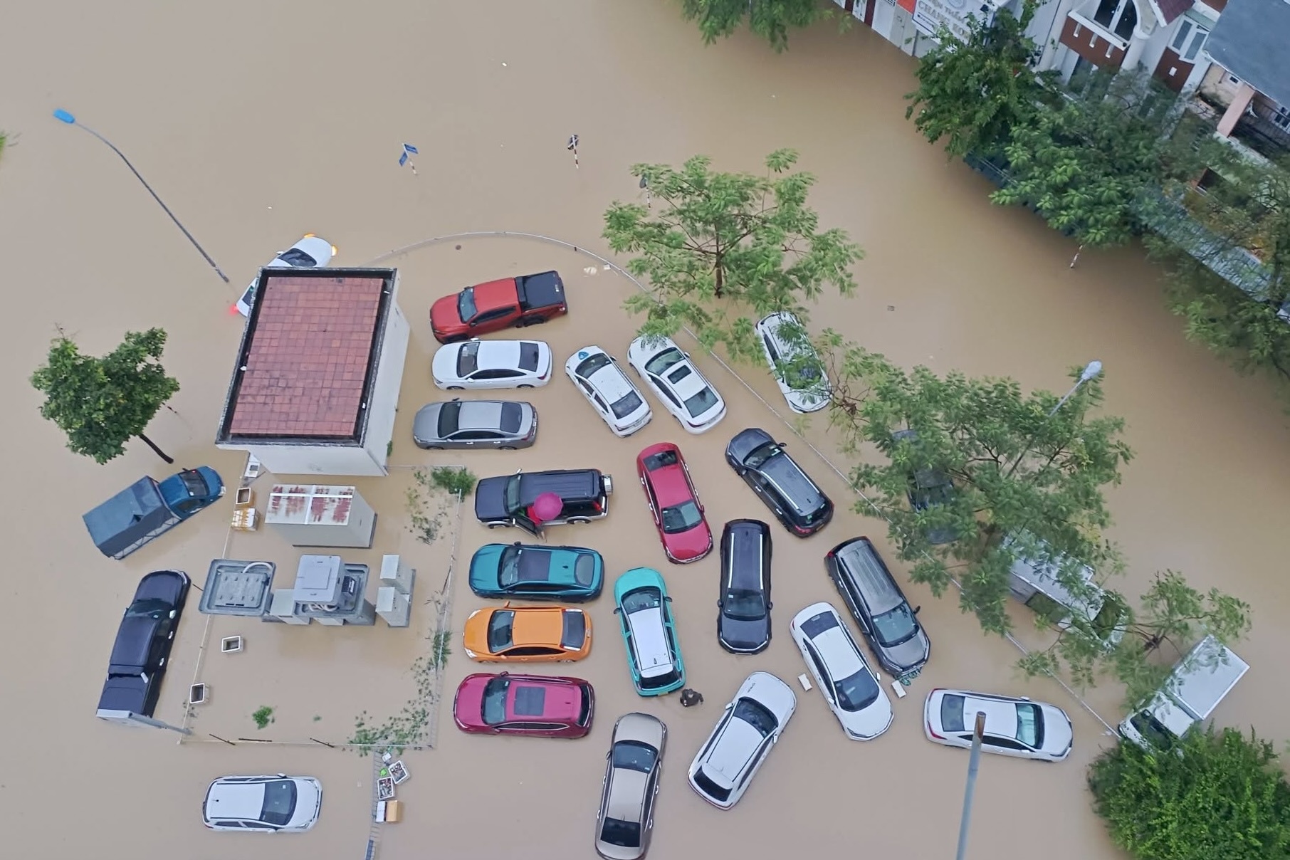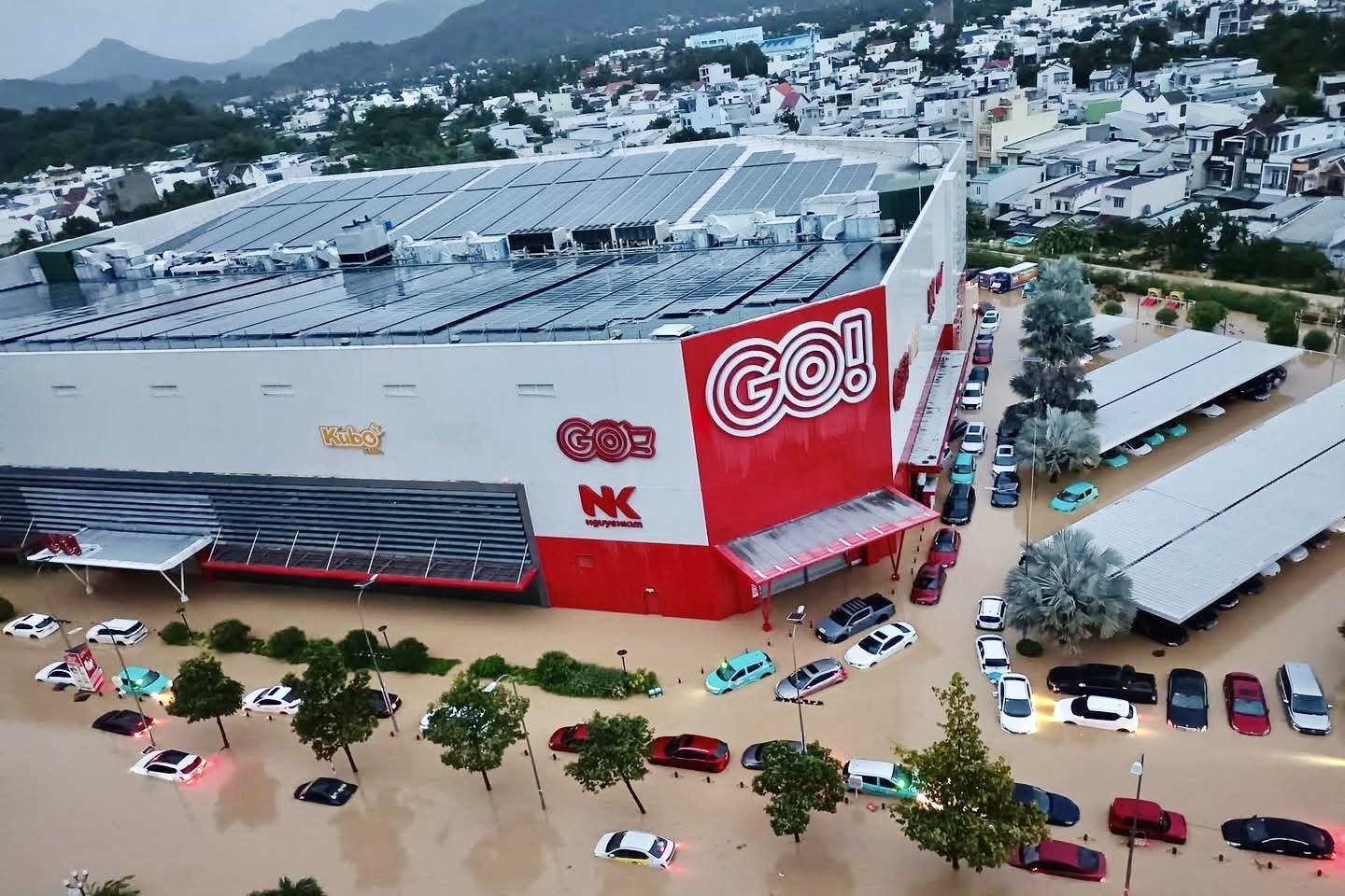 Siêu thị Go tại phường Nha Trang ngập nặng. Nhiều ôtô đậu nhờ ngập trôi la liệt. Ảnh: Đức Lợi.