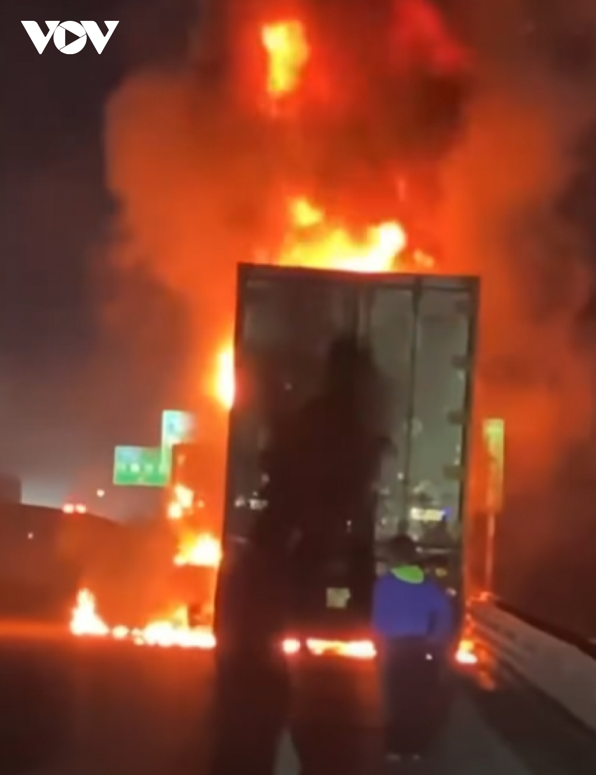 Tài xế khi phát hiện đã điều khiển phương tiện vào làn dừng khẩn cấp, dùng bình chữa cháy mini để khống chế song không thành công.