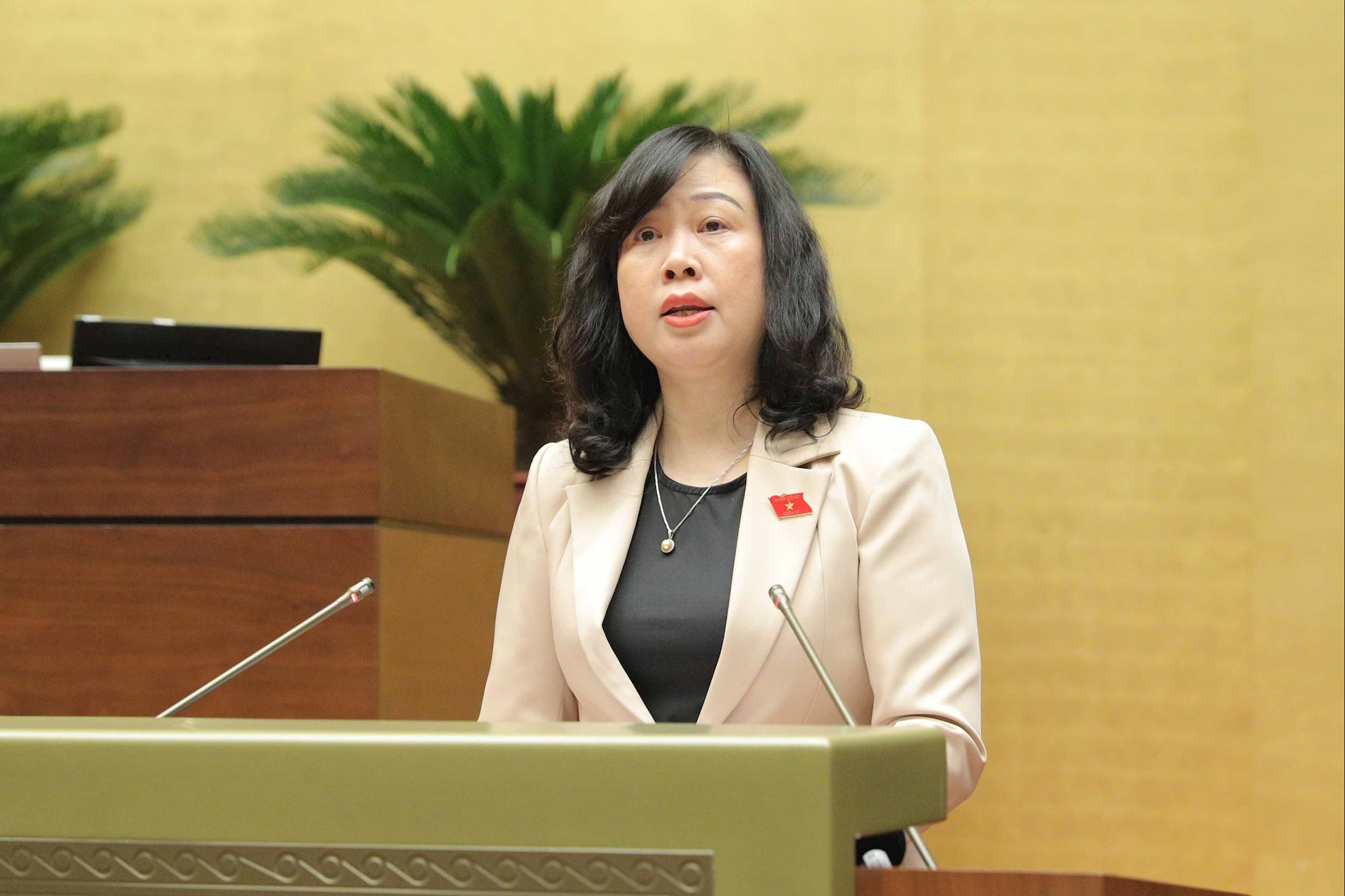 Bộ trưởng Bộ Y tế Đào Hồng Lan trình bày tóm tắt Tờ trình về Chủ trương đầu tư Chương trình mục tiêu quốc gia về chăm sóc sức khỏe, dân số và phát triển giai đoạn 2026 - 2035. Ảnh: Hồ Long
