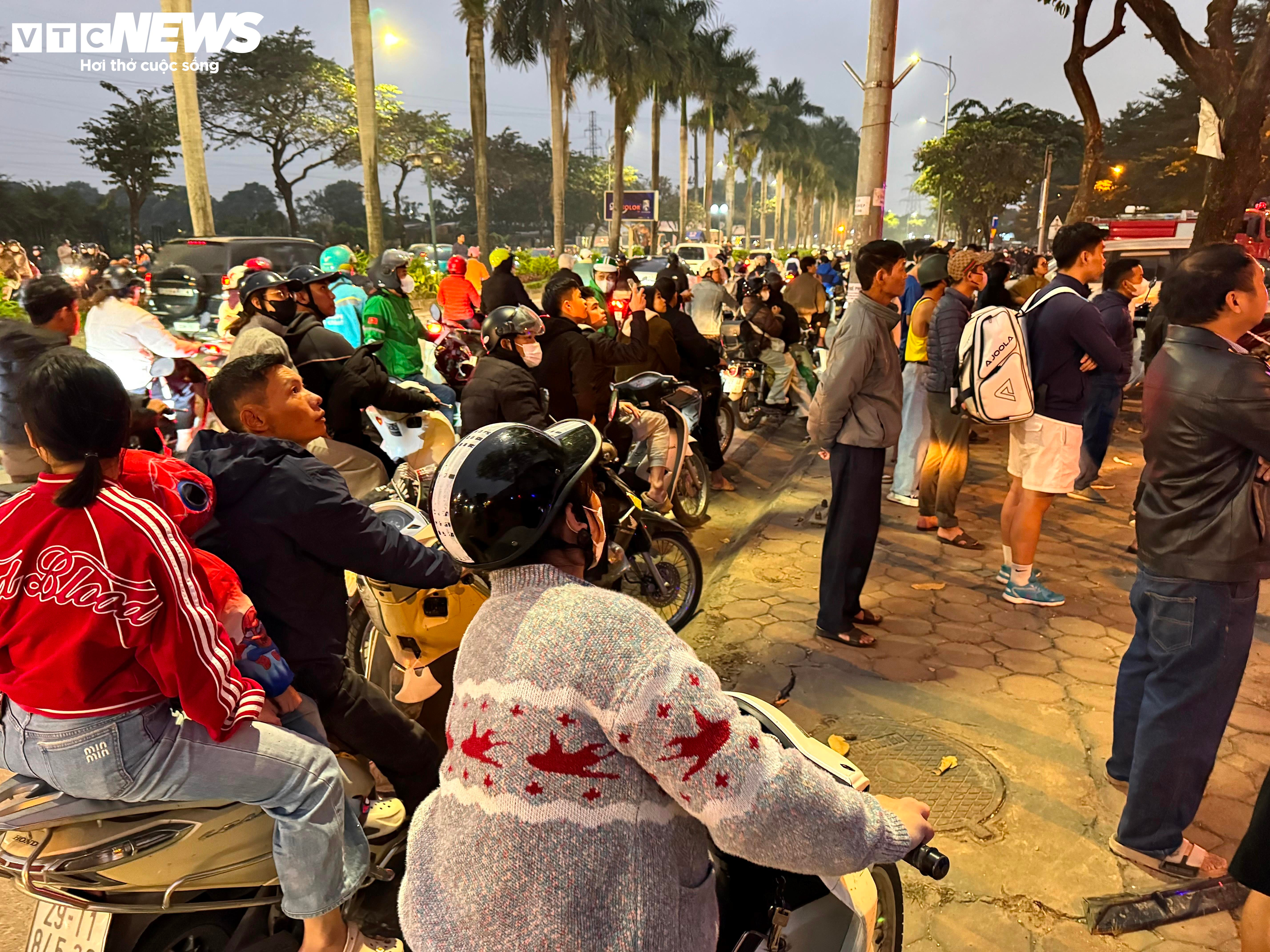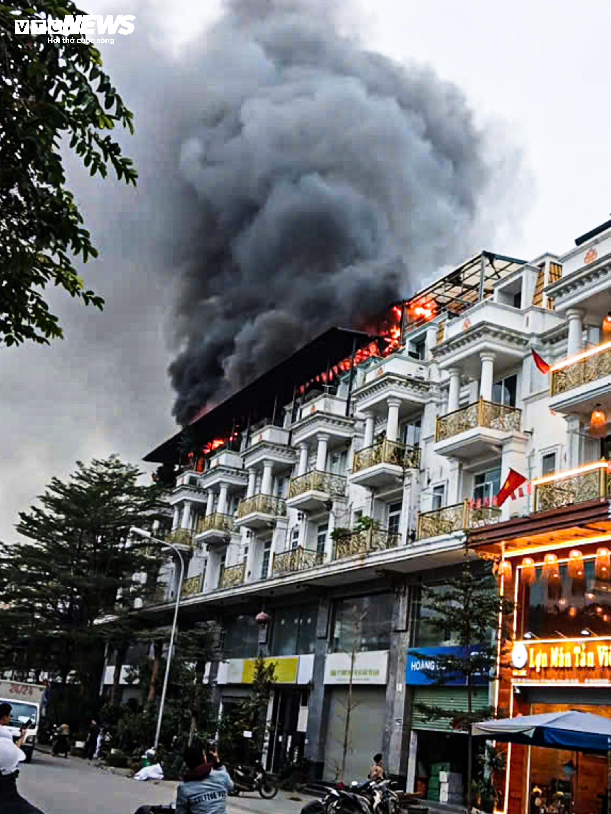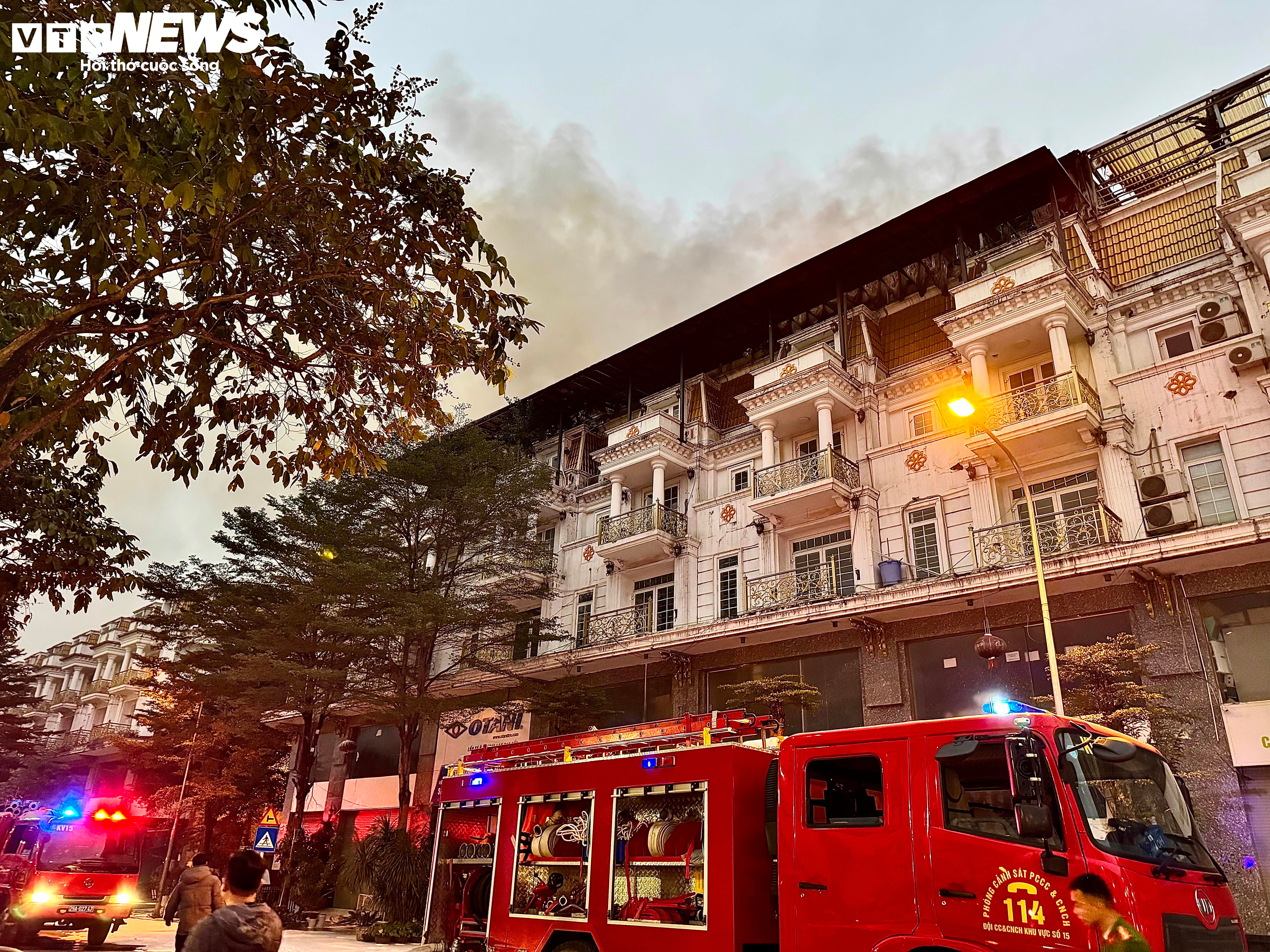 Theo ghi nhận của PV Báo Điện tử VTC News, lúc 17h30 cùng ngày, cột khói vẫn bốc cao tại dãy nhà lô 12AC2 của Khu đô thị Geleximco Lê Trọng Tấn.