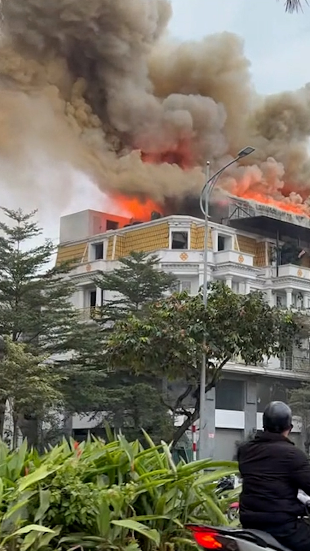 Khói lửa bốc cao khiến nhiều người đi đường hoảng sợ.
