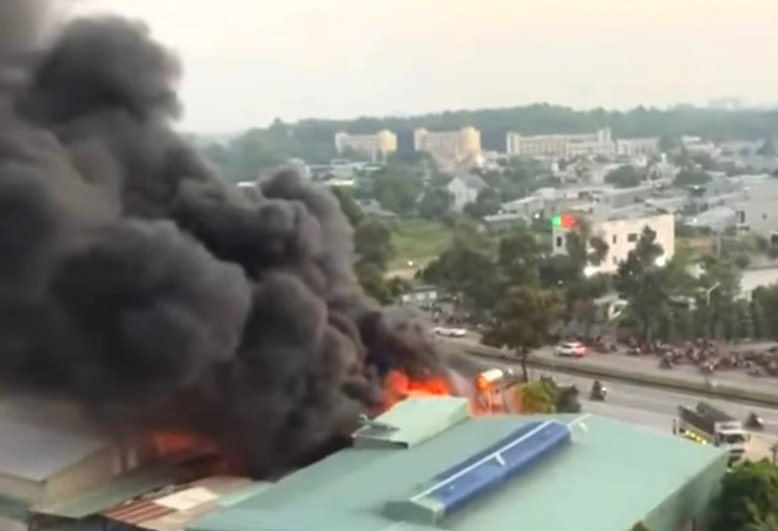 Chiều muộn 30/12, một nhà xưởng không tên trên đường Mỹ Phước Tân Vạn, phường Bình Dương, TPHCM bất ngờ bốc cháy.