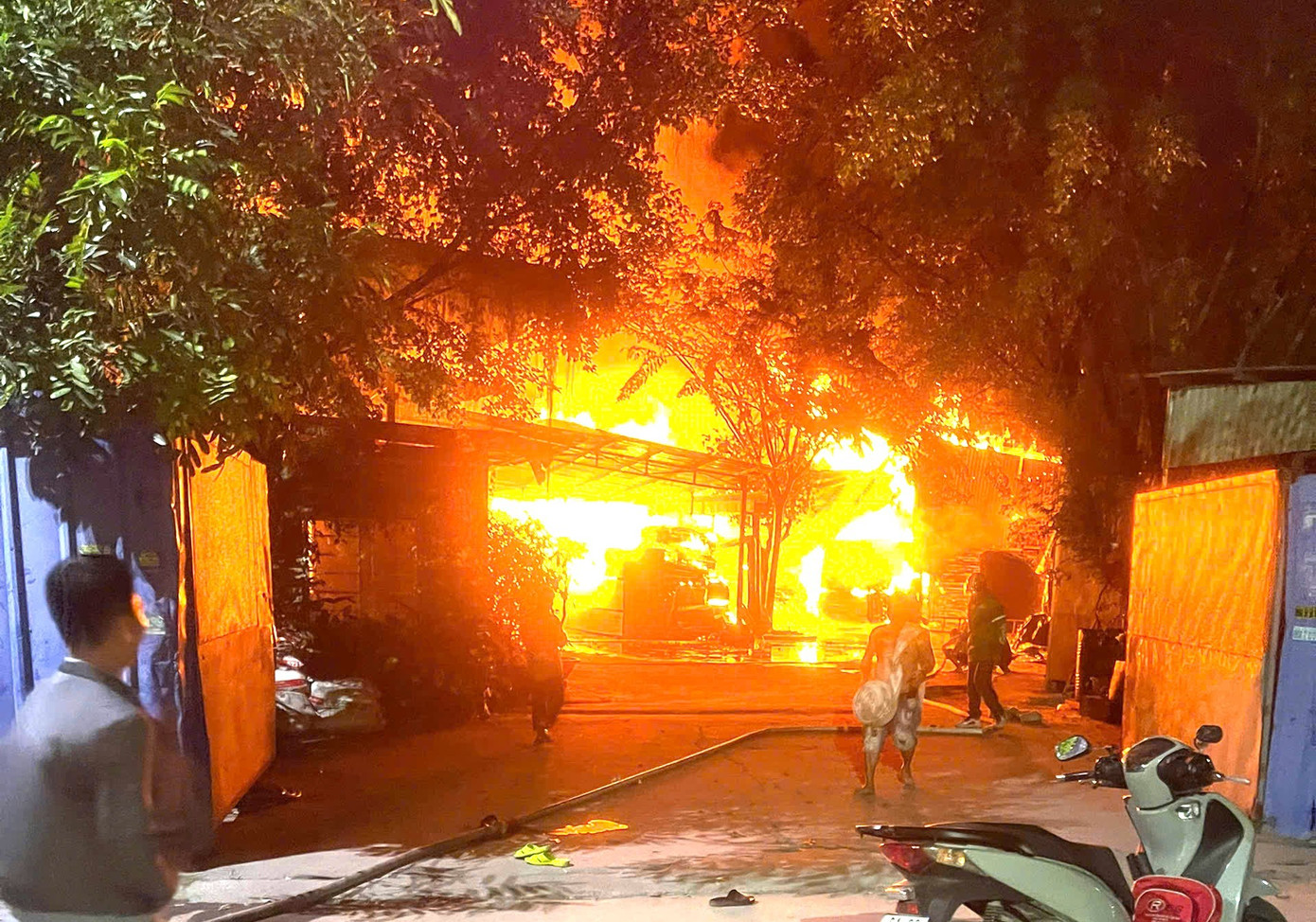 Tại hiện trường, lửa bao trùm khu nhà xưởng rộng hàng trăm mét vuông, chứa nhiều gỗ. Hỏa hoạn không gây thiệt hại về người, song nhiều tài sản trong nhà xưởng bị thiêu rụi.