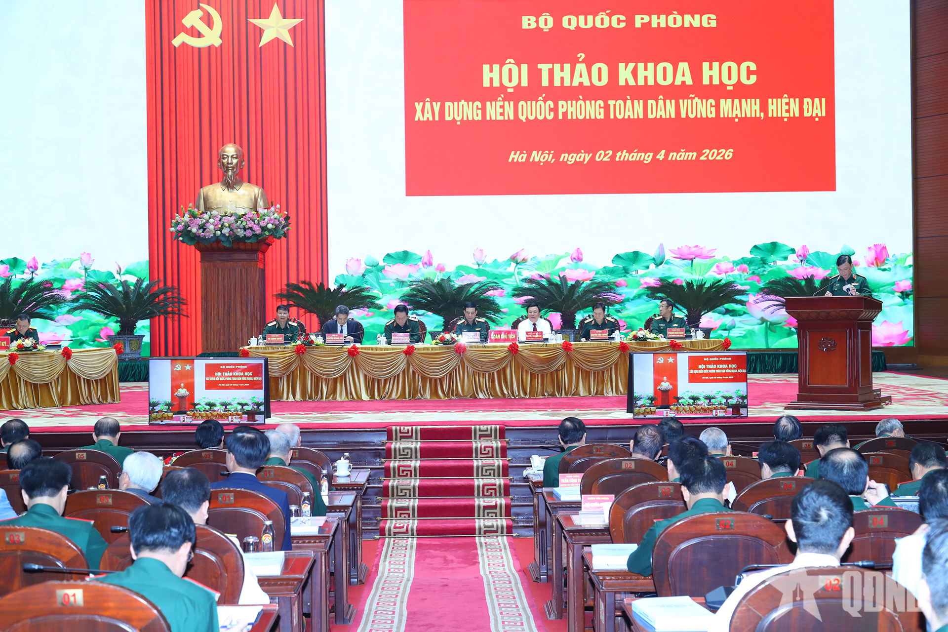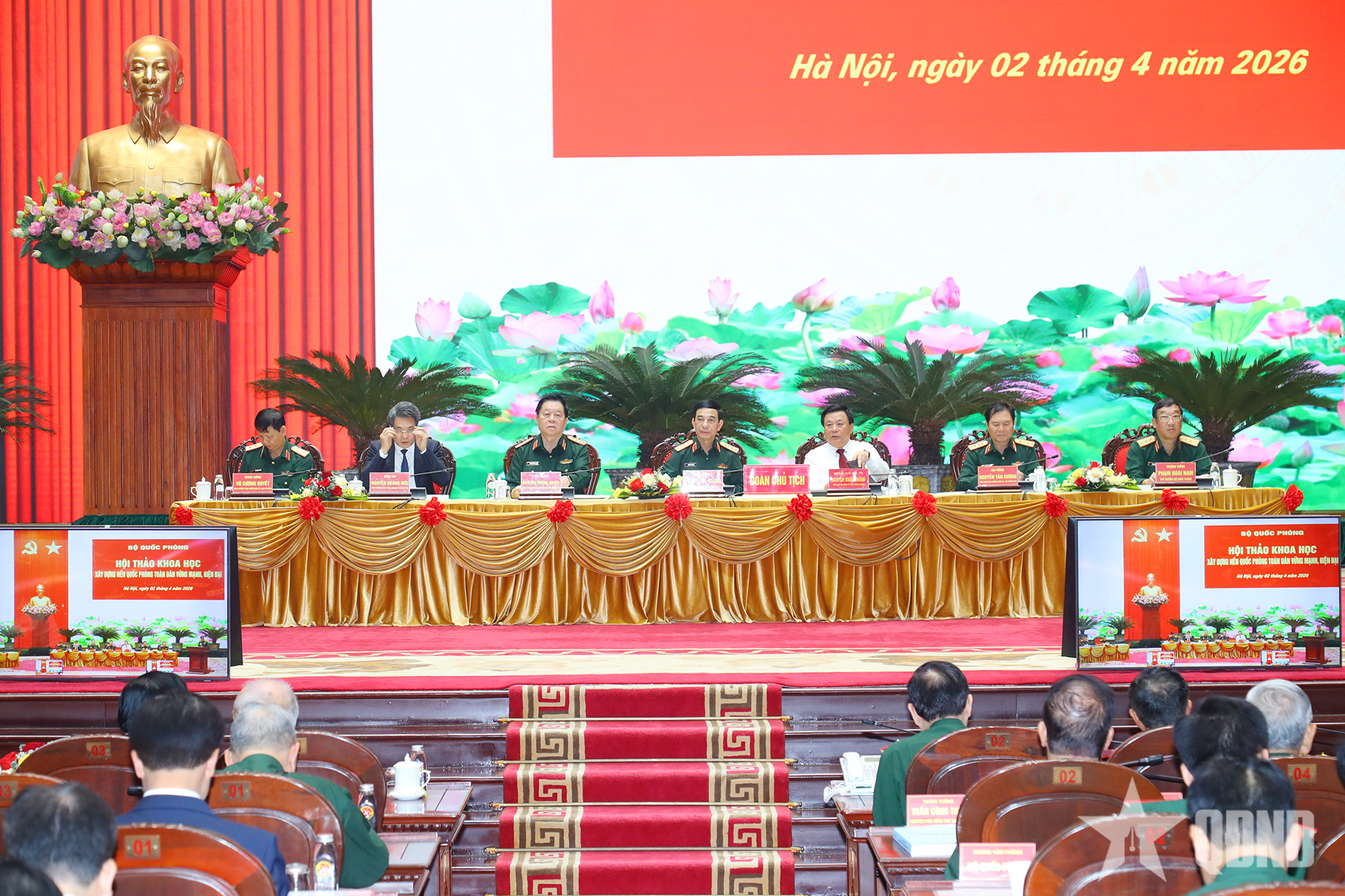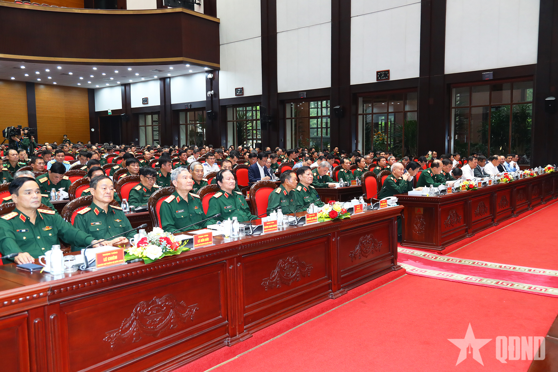 Đoàn chủ tịch hội thảo gồm các đồng chí: Đại tướng Phan Văn Giang, Ủy viên Bộ Chính trị, Phó bí thư Quân ủy Trung ương, Bộ trưởng Bộ Quốc phòng; Đại tướng Nguyễn Trọng Nghĩa, Ủy viên Bộ Chính trị, Bí thư Trung ương Đảng, Ủy viên Thường vụ Quân ủy Trung ương, Chủ nhiệm Tổng cục Chính trị; GS, TS Nguyễn Xuân Thắng, nguyên Ủy viên Bộ Chính trị, nguyên Giám đốc Học viện Chính trị Quốc gia Hồ Chí Minh, Chủ tịch Hội đồng Lý luận Trung ương; Đại tướng Nguyễn Tân Cương, Ủy viên Trung ương Đảng, Ủy viên Thường vụ Quân ủy Trung ương, Tổng Tham mưu trưởng, Thứ trưởng Bộ Quốc phòng; Thượng tướng Phạm Hoài Nam, Ủy viên Trung ương Đảng, Thứ trưởng Bộ Quốc phòng; Nguyễn Quang Đức, Ủy viên Trung ương Đảng, Phó trưởng ban Tuyên giáo và Dân vận Trung ương; Trung tướng Vũ Cương Quyết, Viện trưởng Viện Chiến lược và Lịch sử quốc phòng Việt Nam.