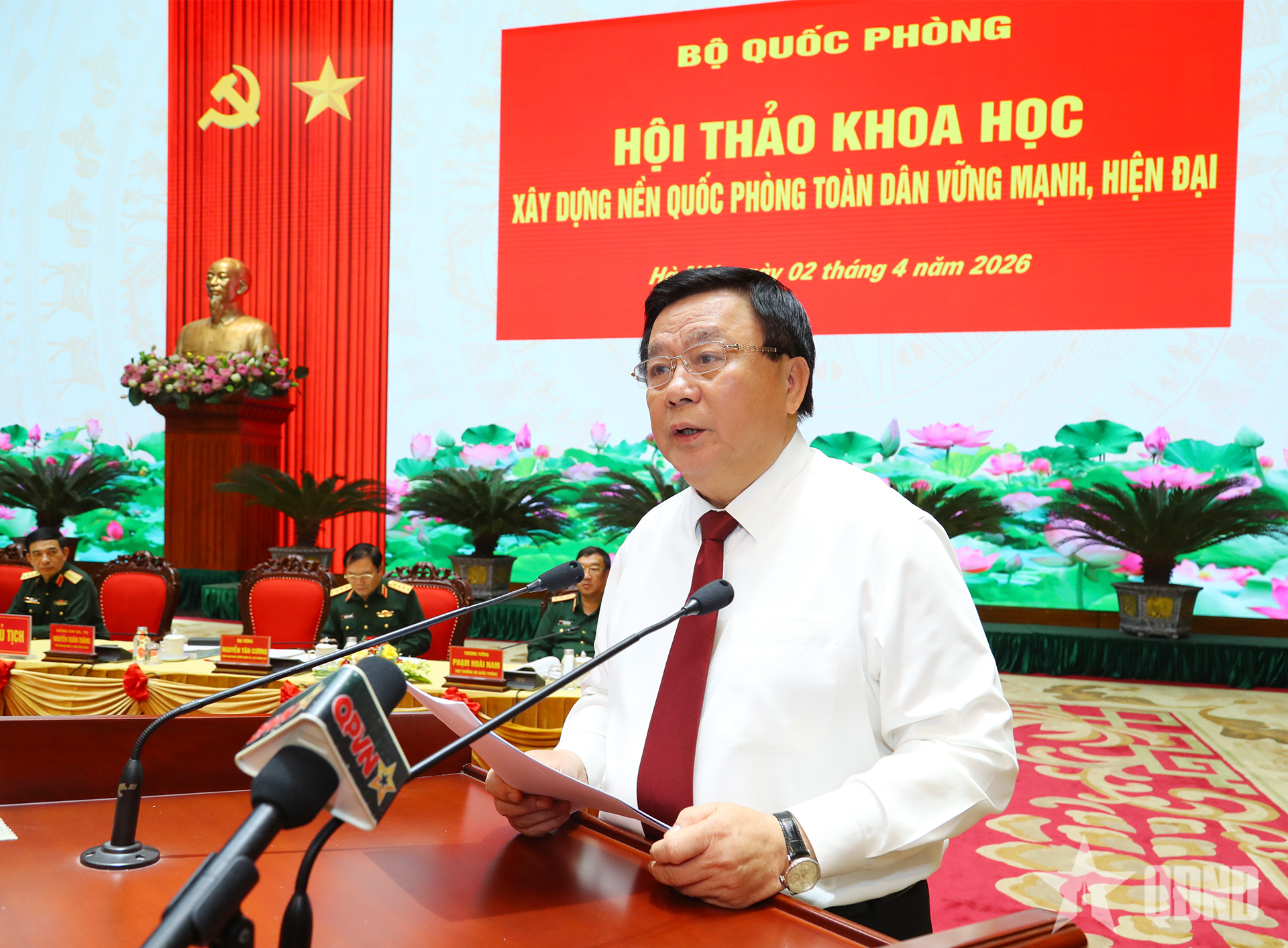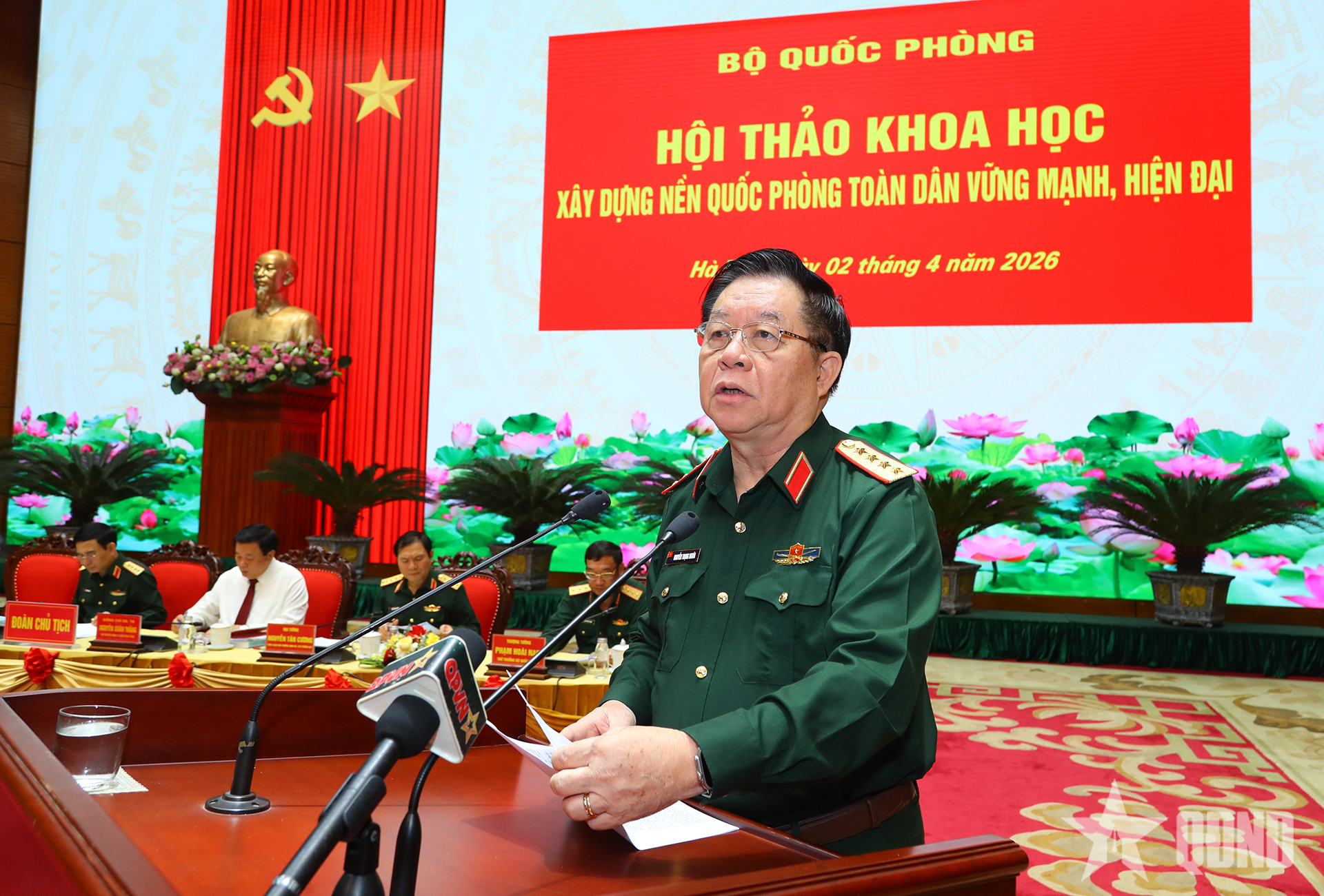 Trình bày báo cáo đề dẫn, Đại tướng Nguyễn Trọng Nghĩa nêu rõ: Hội thảo hôm nay nhằm tiếp tục làm rõ những vấn đề khoa học và thực tiễn đặt ra trong quá trình xây dựng nền quốc phòng toàn dân của nước ta; đồng thời, cung cấp luận cứ khoa học cho Quân ủy Trung ương, Bộ Quốc phòng tham mưu chiến lược với Đảng, Nhà nước trong sự nghiệp BVTQ thời kỳ mới; góp phần nâng cao chất lượng, hiệu quả nghiên cứu, học tập, quán triệt, tuyên truyền và triển khai thực hiện Nghị quyết Đại hội XIV của Đảng vào cuộc sống.