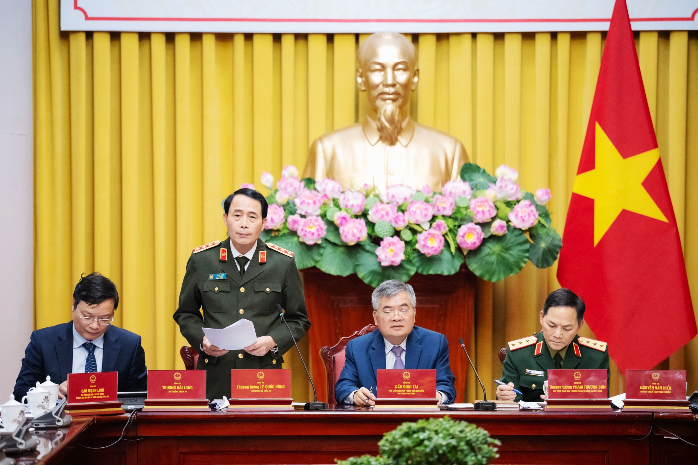 Thứ trưởng Bộ Công an Lê Quốc Hùng giới thiệu những điểm mới của Luật Chuyển giao người đang chấp hành án phạt tù. Ảnh: H.Ngọc