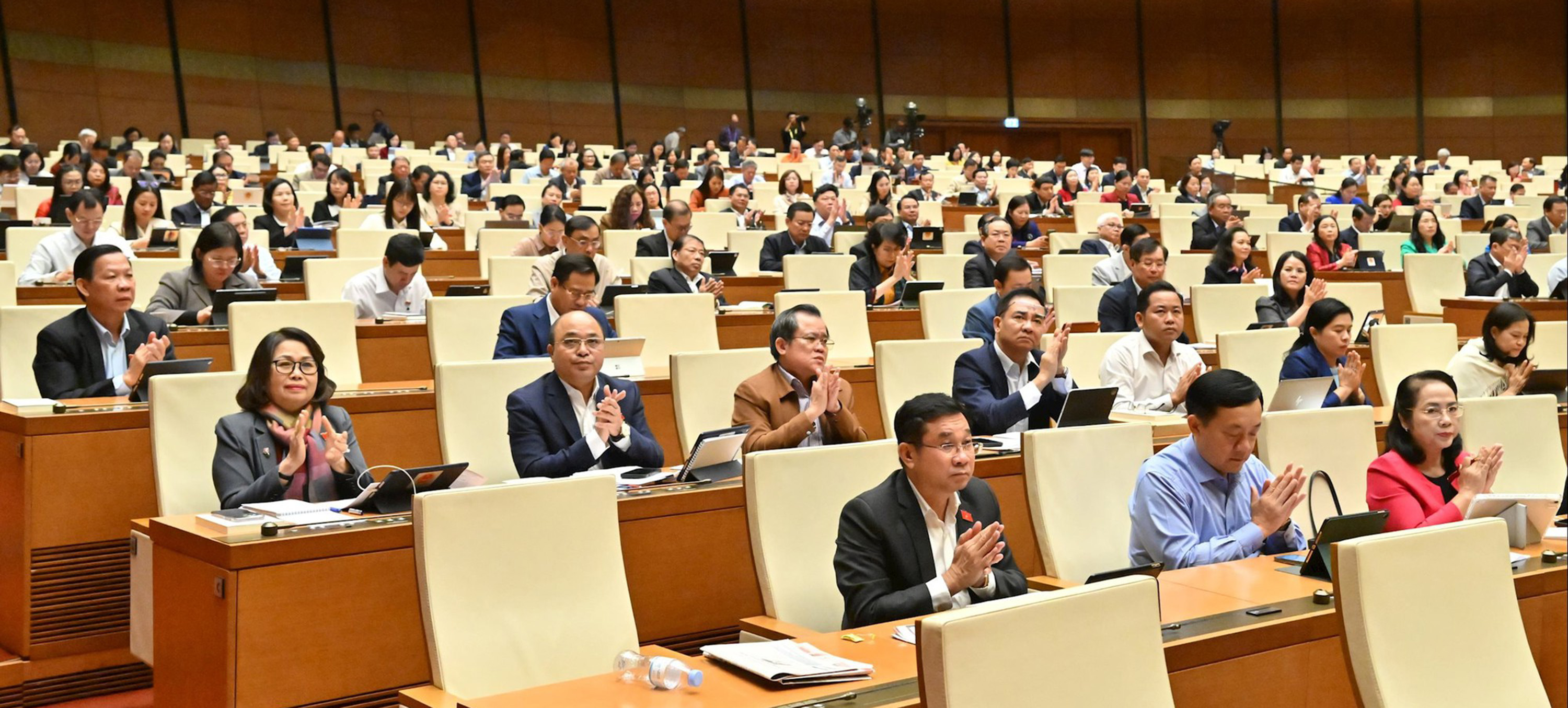 Các Đại biểu Quốc hội chúc mừng thông qua Luật Dân số ngày 10-12-2025