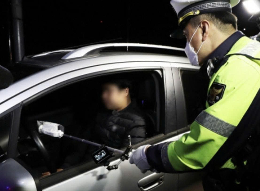 Cảnh sát Hàn Quốc tiến hành kiểm tra nồng độ cồn của tài xế. Ảnh: Yonhap