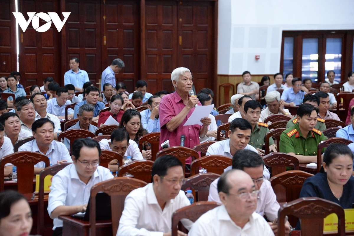 Cử tri Lương Ngọc Lê nêu ý kiến tại cuộc tiếp xúc cử tri